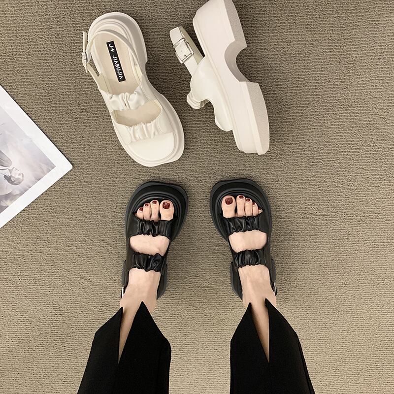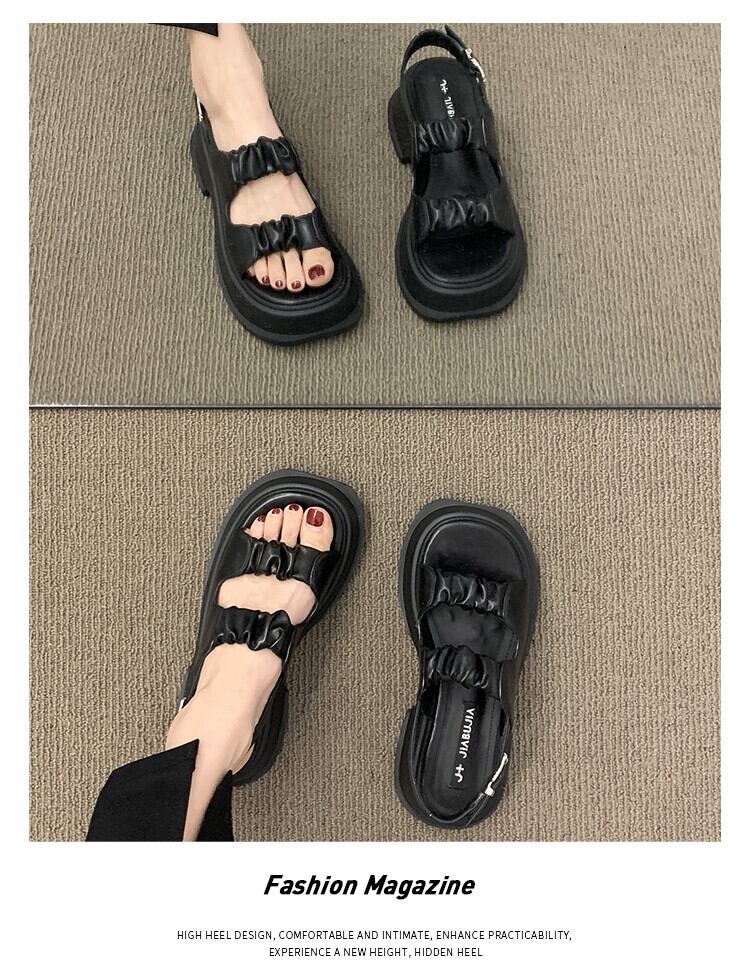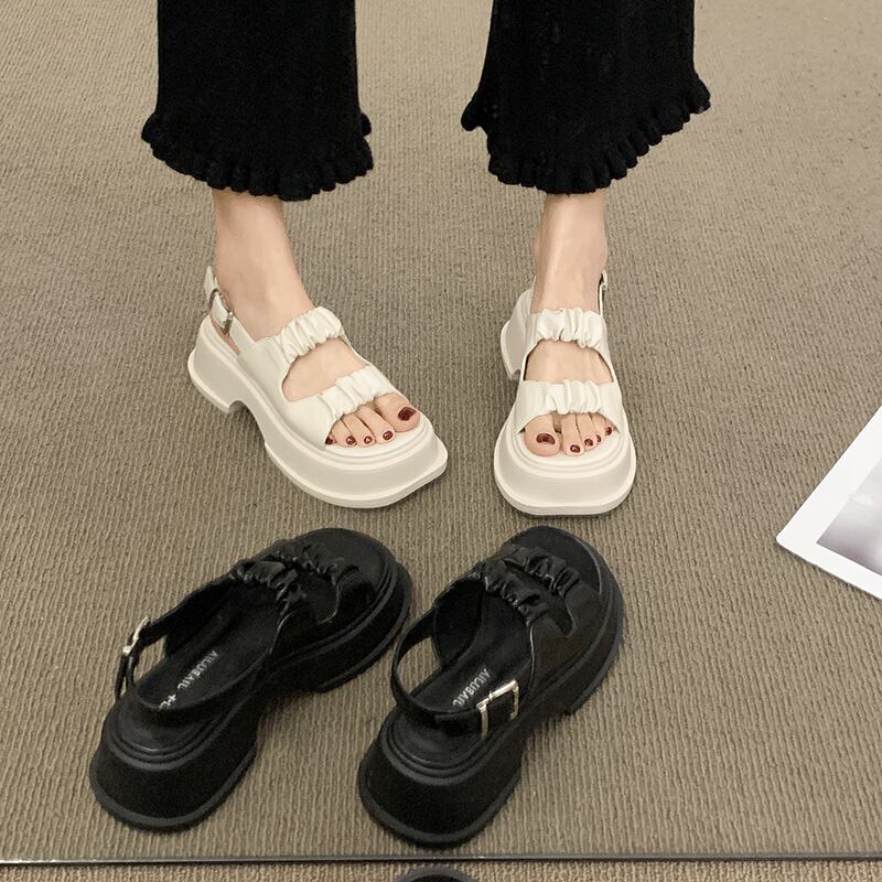サンダルレディーススカート2022夏の新しい厚いかかと滑り止めネット赤いファッションオールマッチ小さなレトロなローマの靴 シューズ レッド ヒール サマー 夏物 jxjxf35566768863