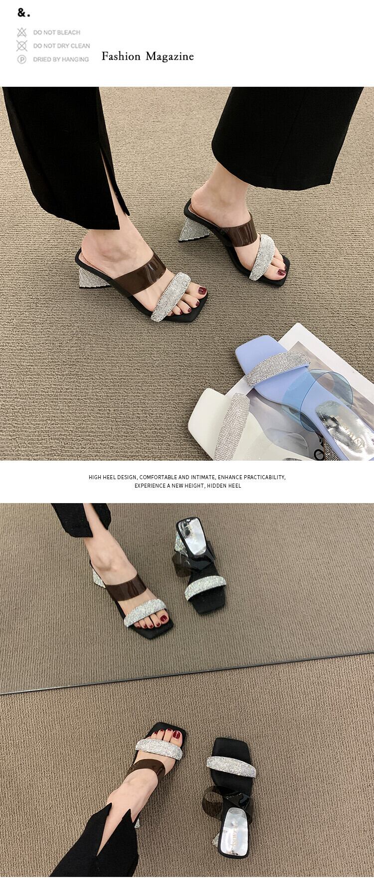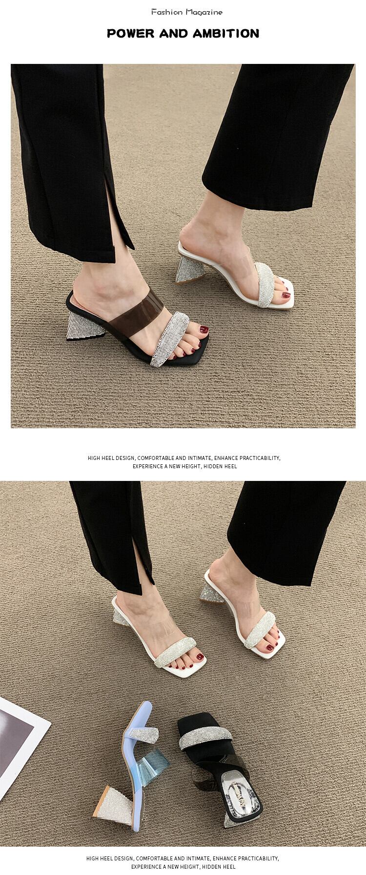 一言ビーチサンダル2022年夏の女性の新しい透明なラインストーン厚いヒールのネットレッドファッションオールマッチの妖精スタイルのサンダルとスリッパ ミュール 靴 シューズ サマー 夏物 jxjxf96802150924