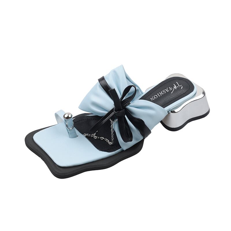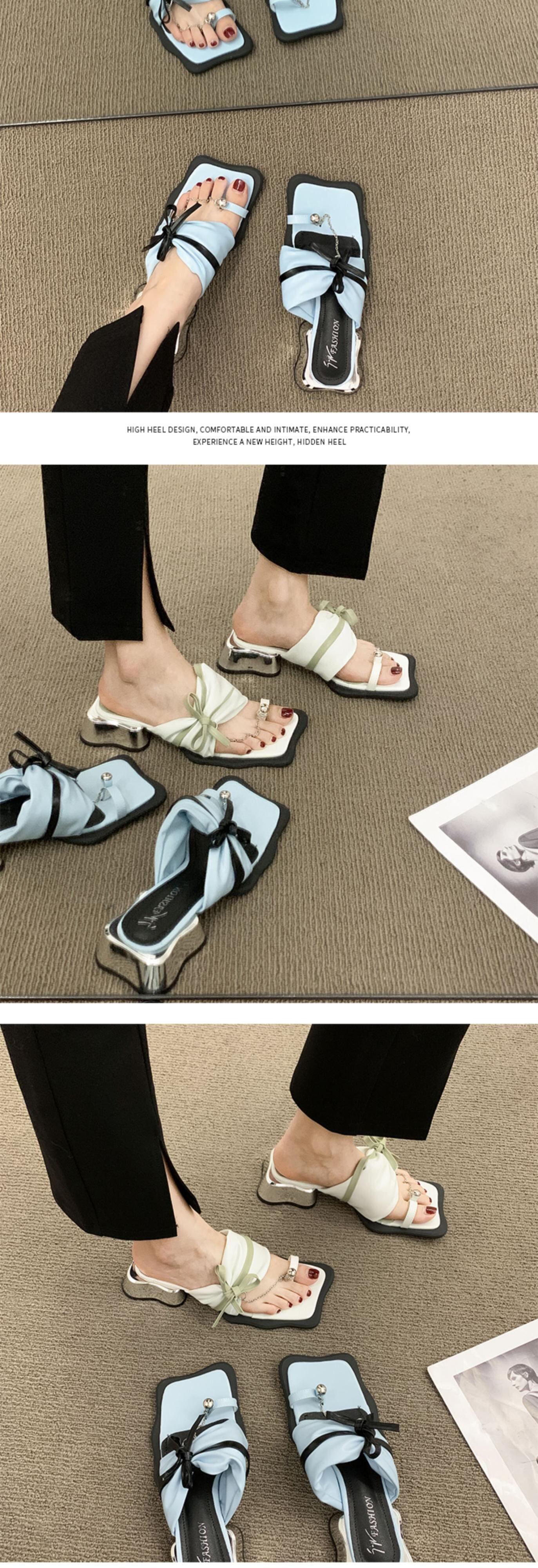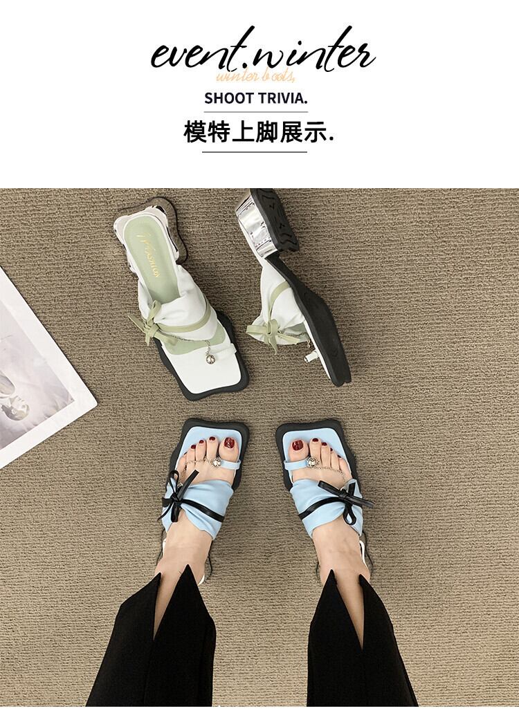つま先スリッパレディースサマーウェア2022年新作ファッションオールマッチレトロボウシックヒールノンスリップサンダルとスリッパタイドのセット リボン ミュール 靴 シューズ 夏物 jxjxf56829466910