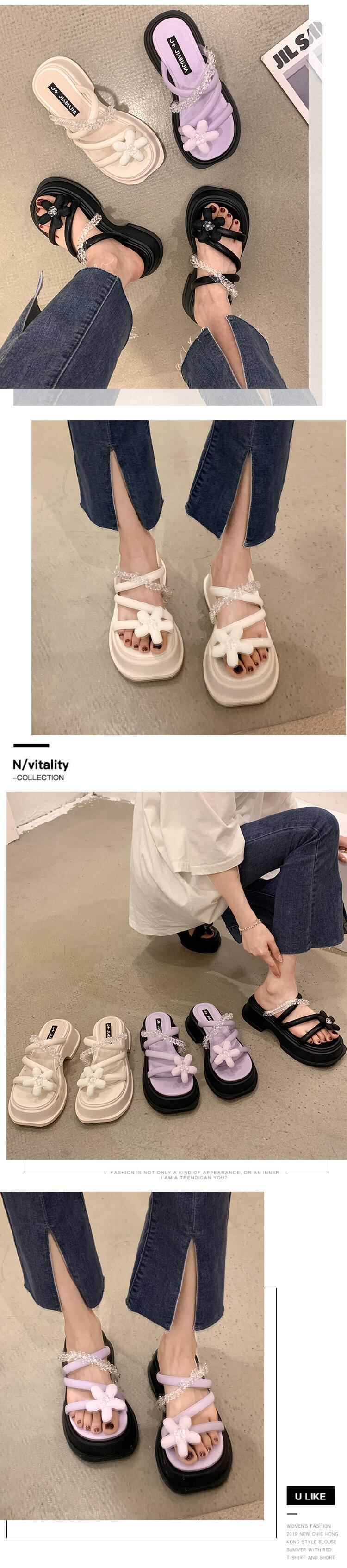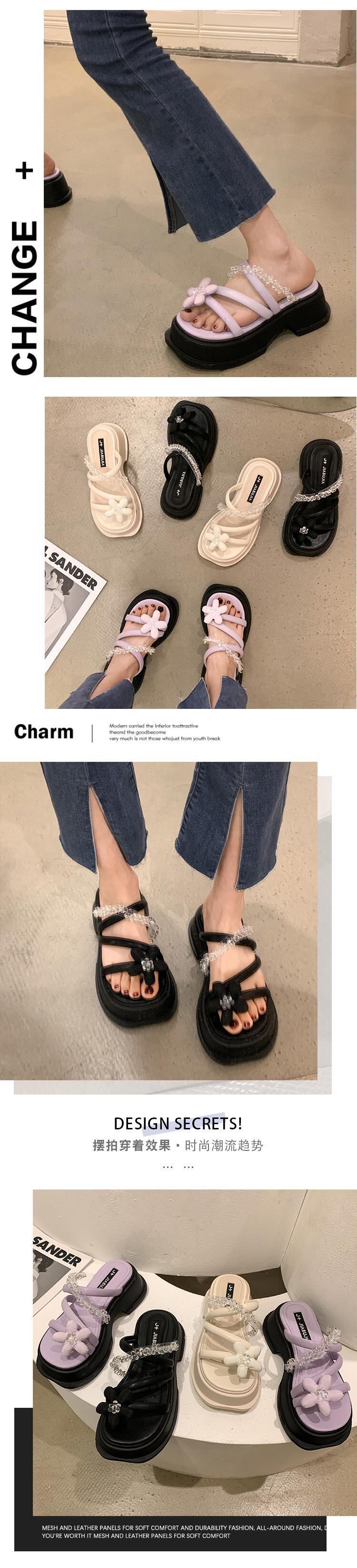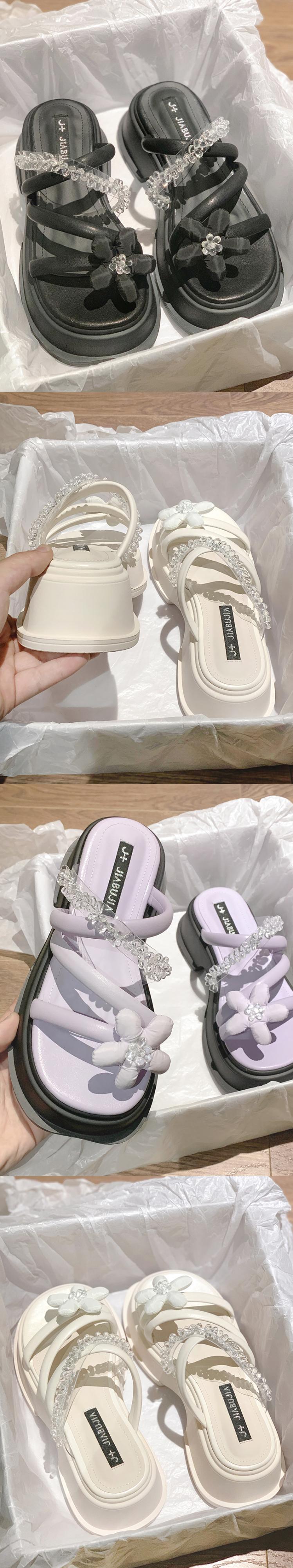 Jia Bujie一言で言えば女性の2022年夏の新しい花、厚いかかと、夏のファッション、オールマッチの夏のサンダルとスリッパ ヒール 靴 シューズ ミュール サマー 夏物 フラワーデザイン jxjxf47285840740