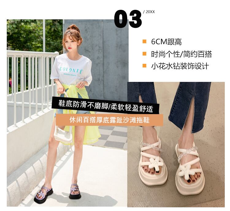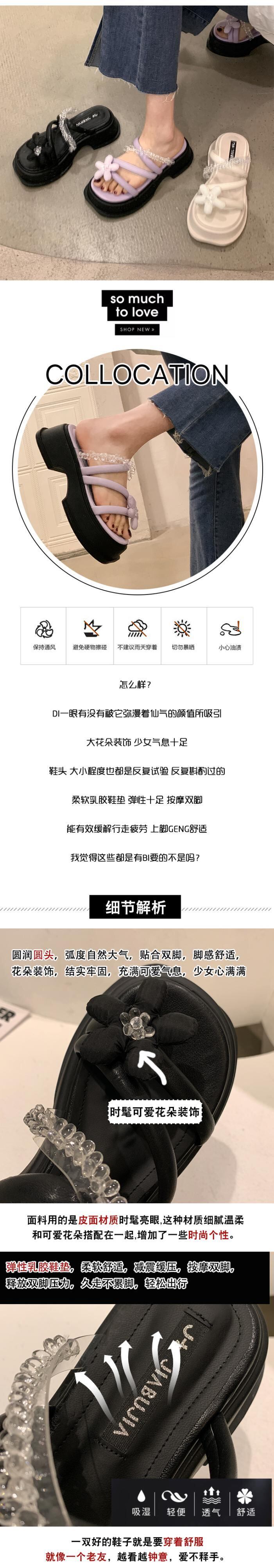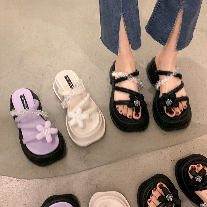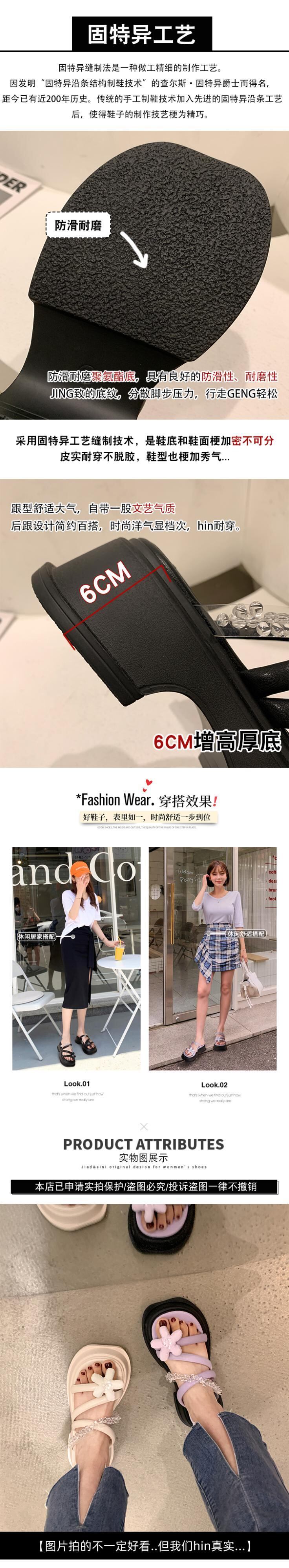 Jia Bujie一言で言えば女性の2022年夏の新しい花、厚いかかと、夏のファッション、オールマッチの夏のサンダルとスリッパ ヒール 靴 シューズ ミュール サマー 夏物 フラワーデザイン jxjxf47285840740