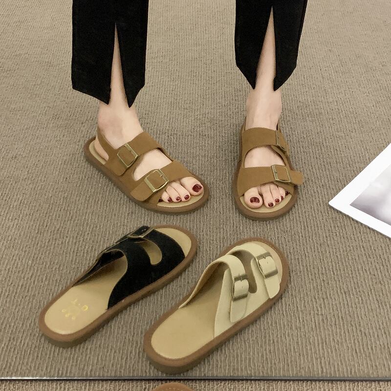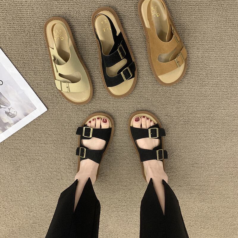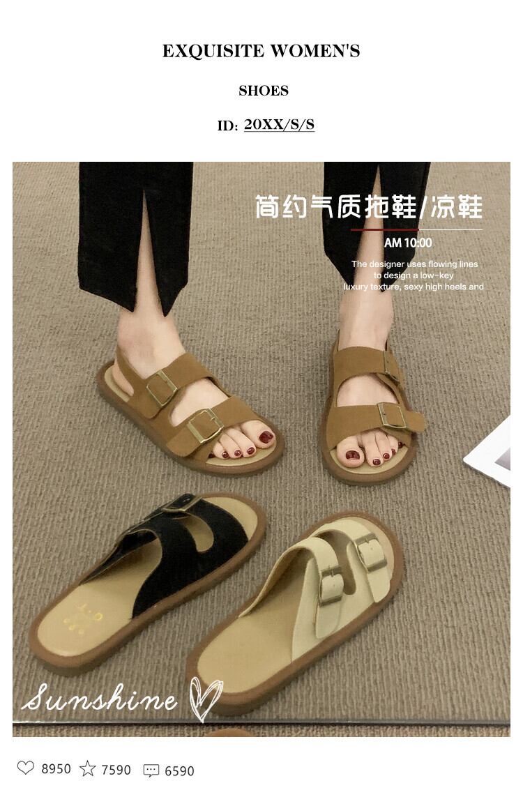 一言ビーチサンダル女性の2022年夏の新しいベルトバックルフラットボトム滑り止めネットレッドファッションオールマッチレトロスリッパ ミュール 靴 シューズ サマー 夏物 ハーネス jxjxf52784069321
