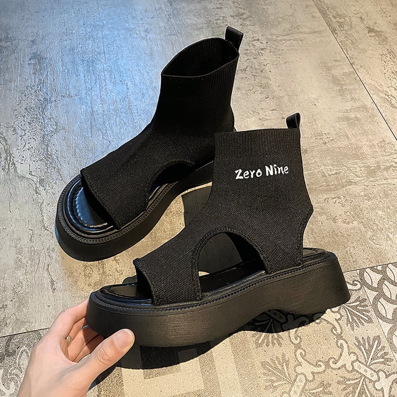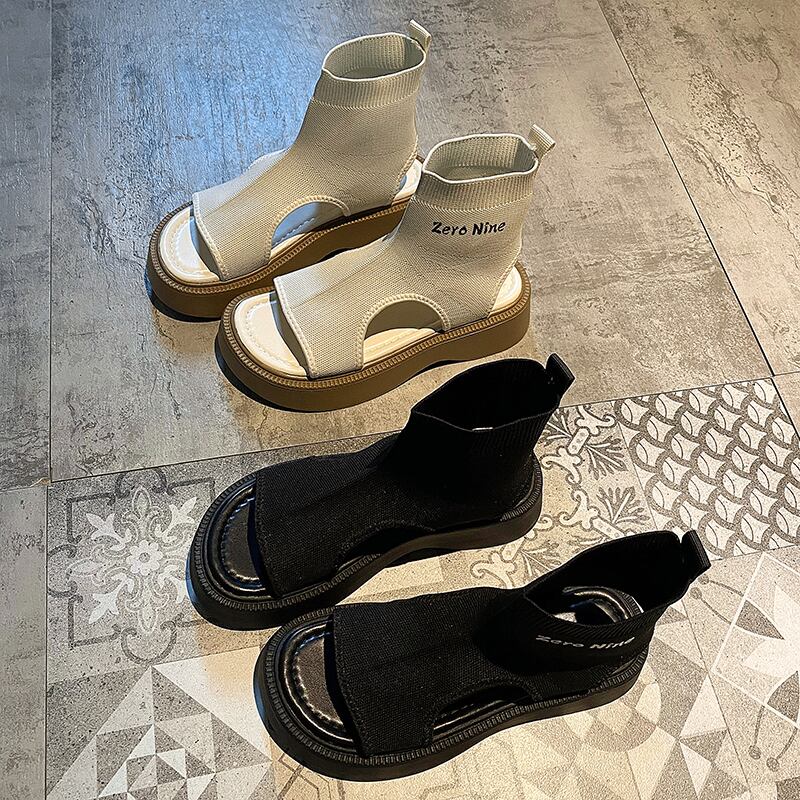 JiaBuフェイクサンダルレディース2022夏新しいオールマッチニット小さなマフィン厚底滑り止めカジュアルサンダル 靴 シューズ サマー 夏物 jxjxf90678374113