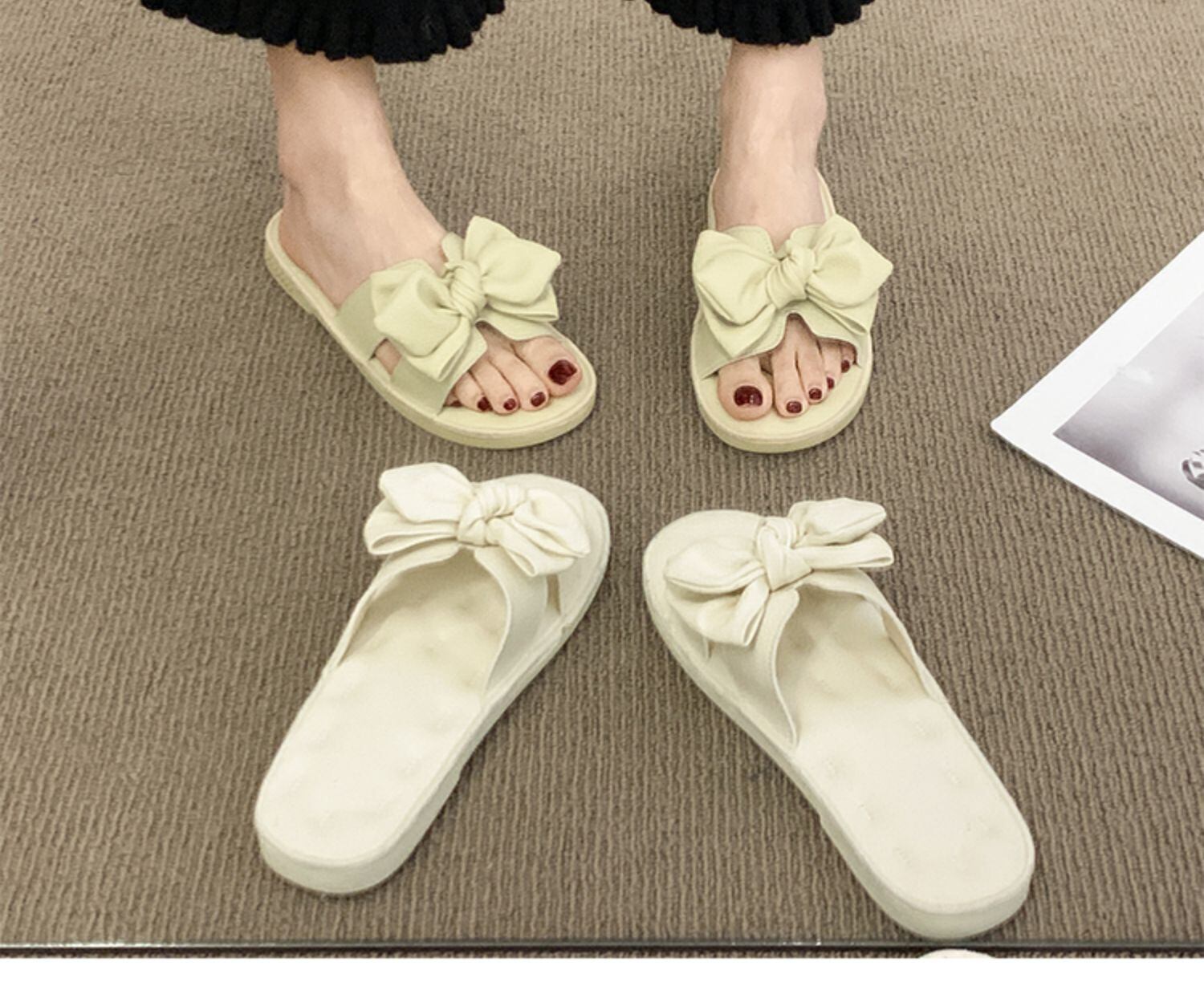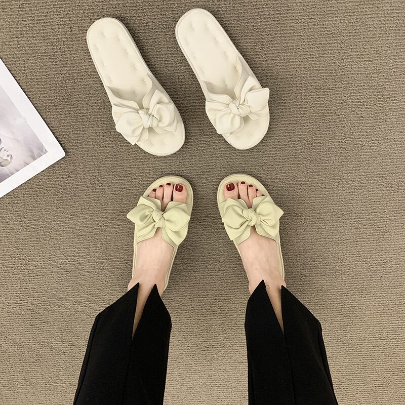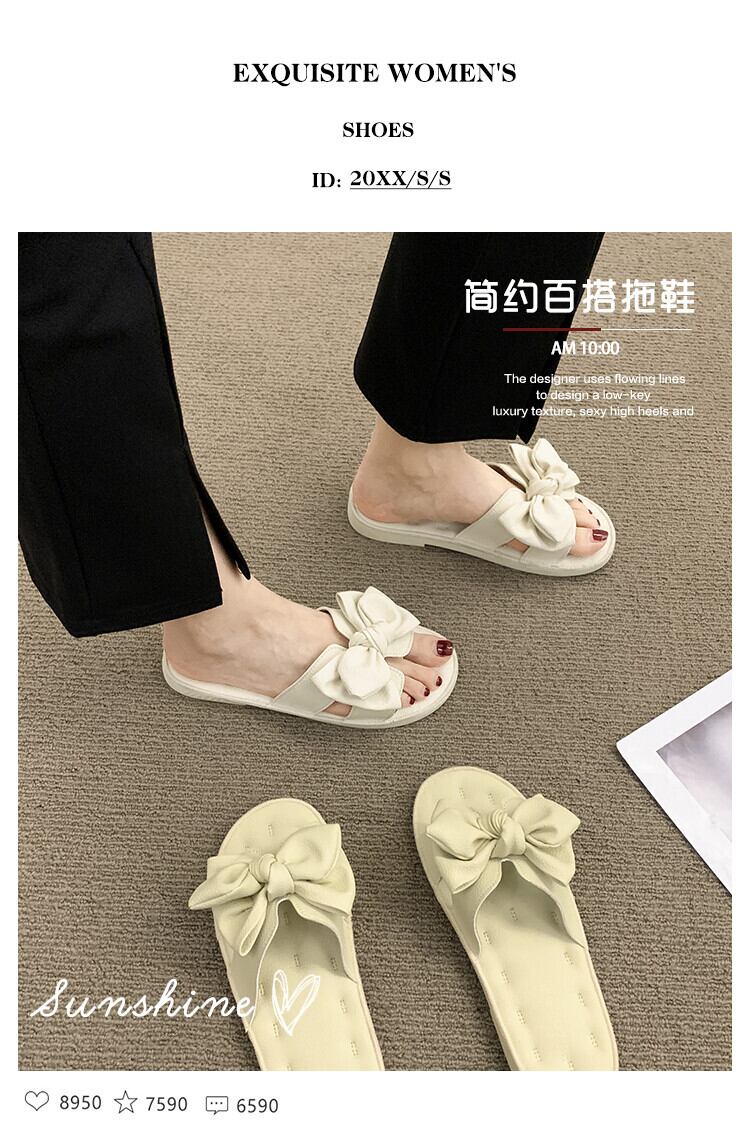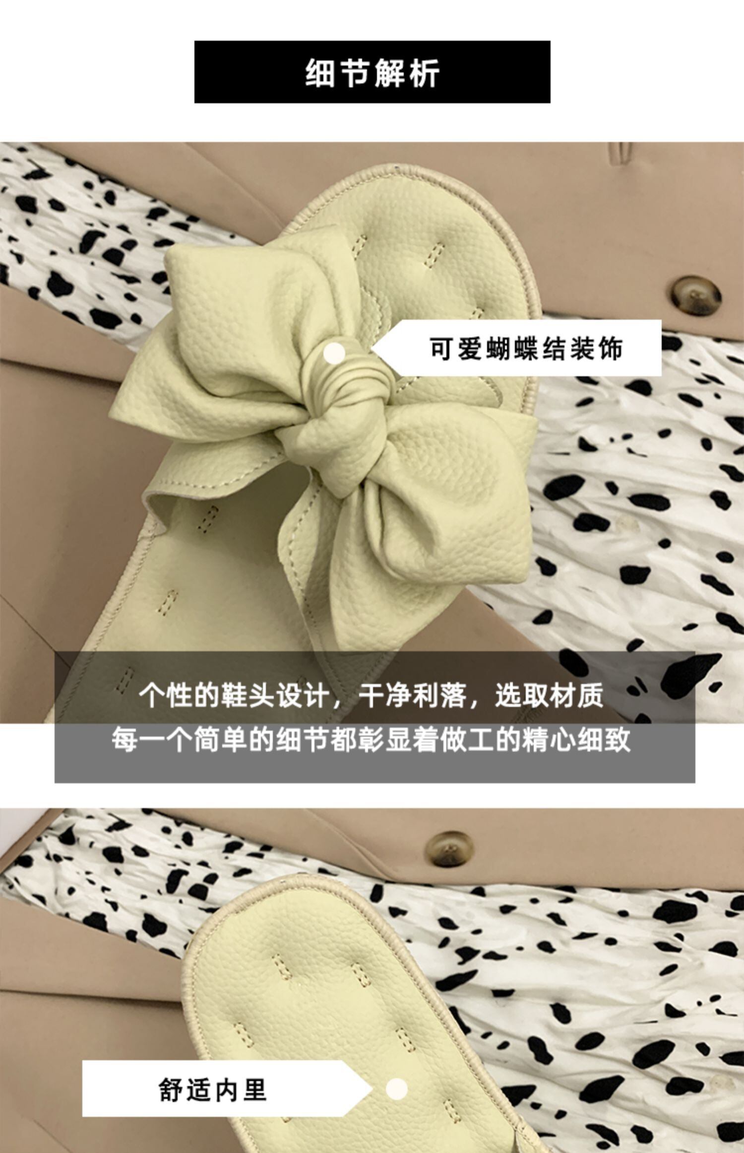 JiaBujieレディーススリッパ2022夏の新しいオールマッチレトロボウフラットボトム滑り止めワンワードサンダルとスリッパ リボン ミュール 靴 シューズ サマー 夏物 スリッポン jxjxf28288373476