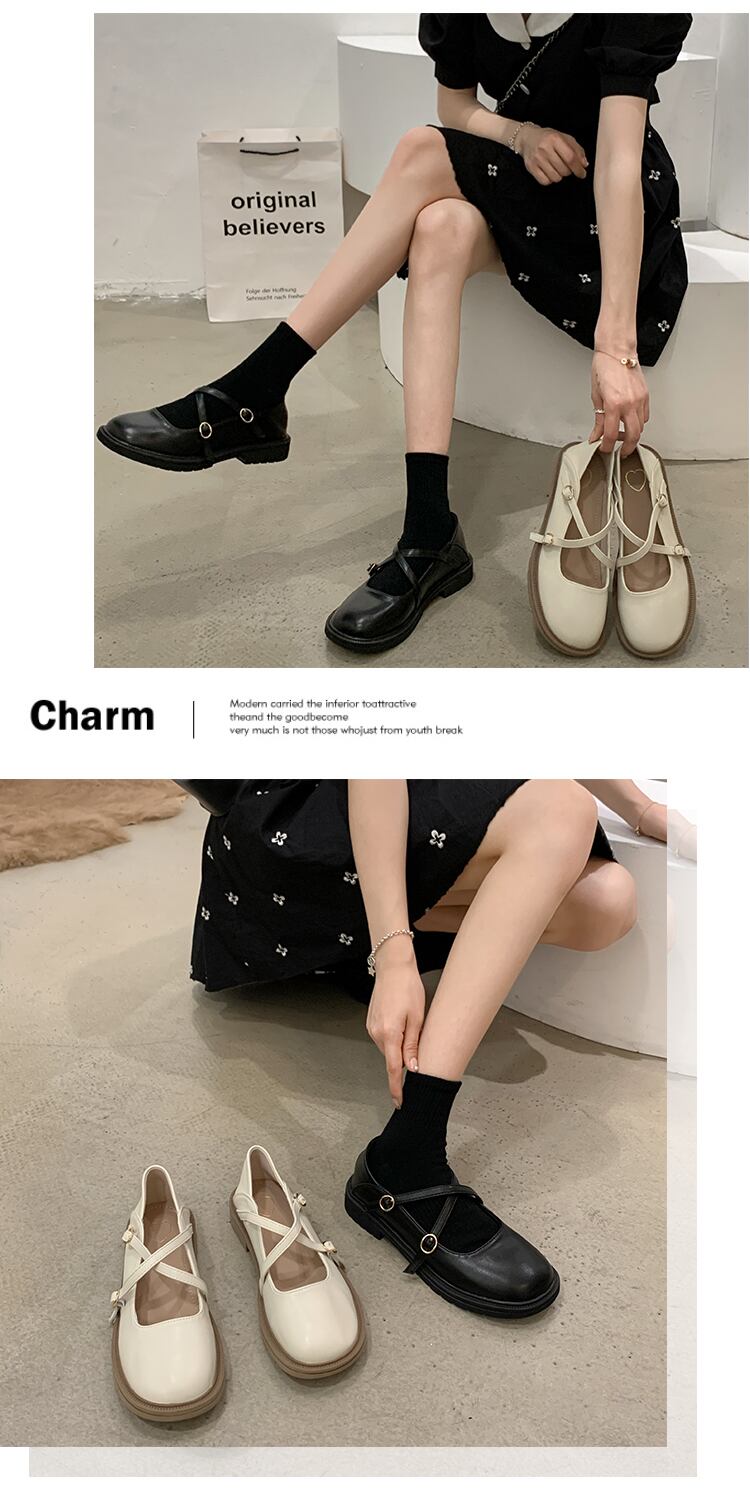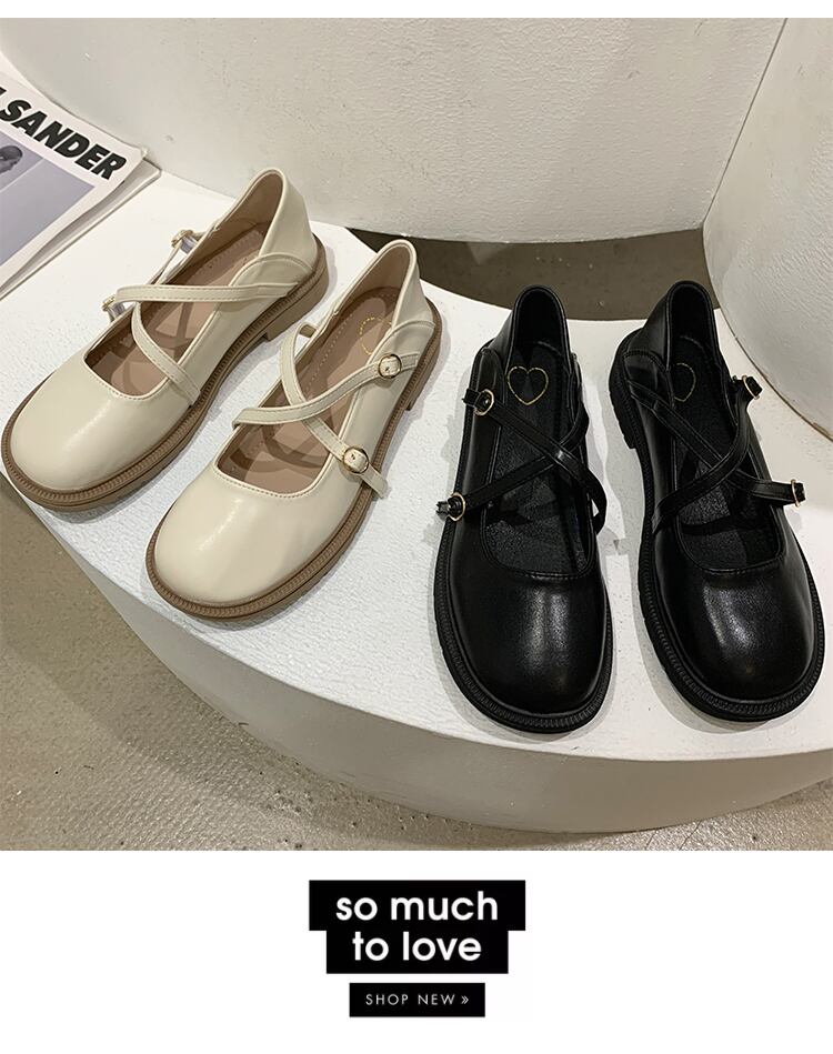 メリージェーンの靴の女性の2022年春の新しいクロスフラット滑り止めファッションオールマッチeseレトロな小さな革の靴の潮 シューズ スプリング 春物 レザー jxjxf41308196584