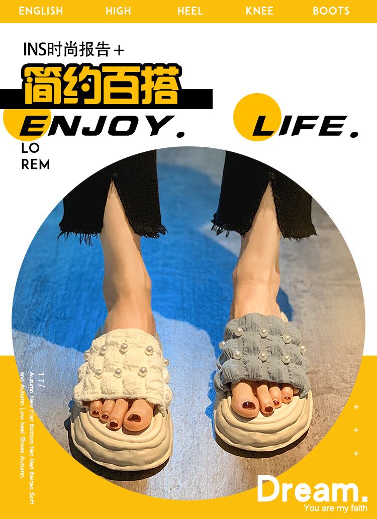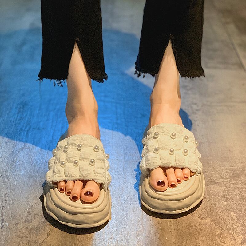 アウターウェアスリッパレディース2022年夏ニューネットレッドファッションスモールシックボトム滑り止めパールワンワードサンダルとスリッパ ミュール 靴 シューズ サマー 夏物 真珠 jxjxf9884100136