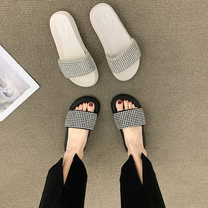 女性の2022年夏の新しいラインストーンスポンジケーキ滑り止めネットレッドファッションオールマッチレトロサンダルとスリッパ ミュール 靴 シューズ サマー 夏物 jxjxf48229626740