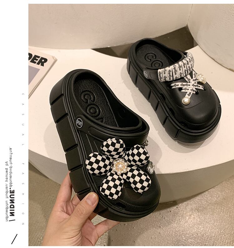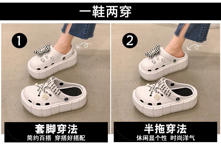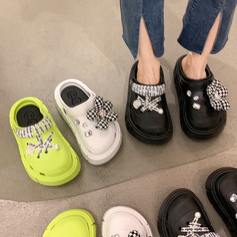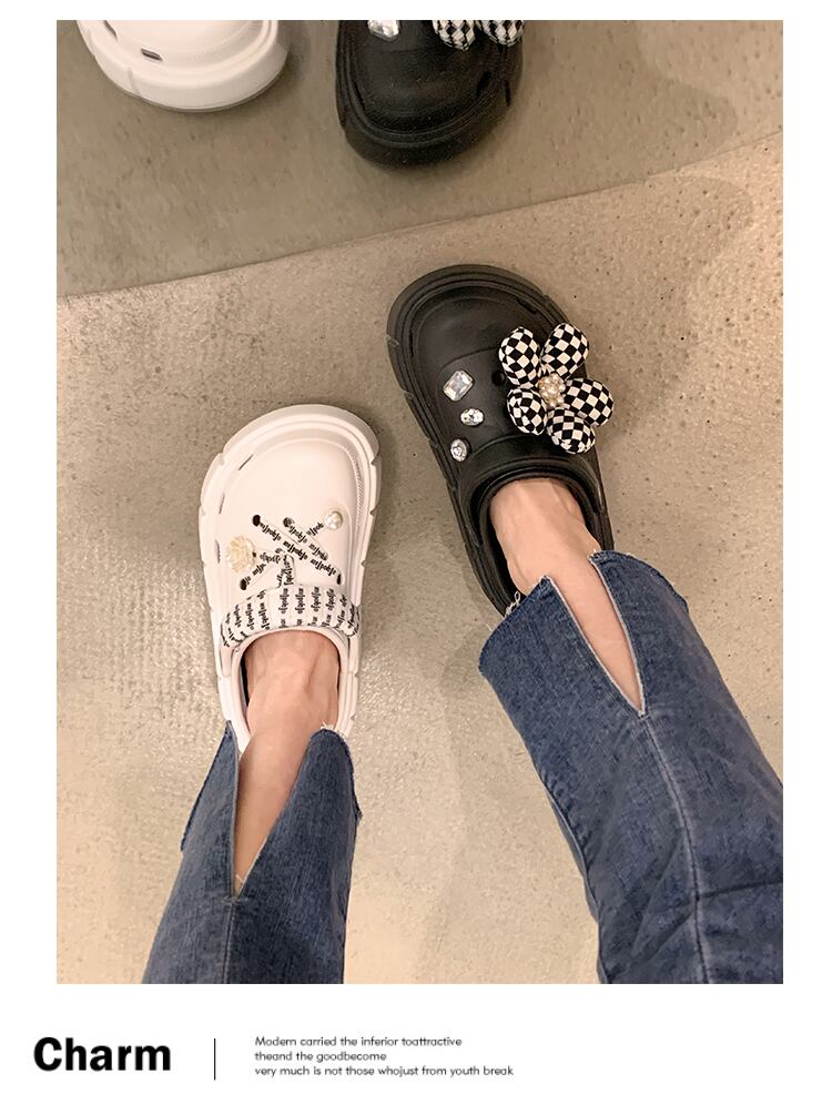 洞窟靴女性の2022年夏の新しいファッション真珠の花小さな2つは厚い底の滑り止めのつま先のサンダルを着用します シューズ サマー 夏物 パール フラワーデザイン jxjxf54712645986