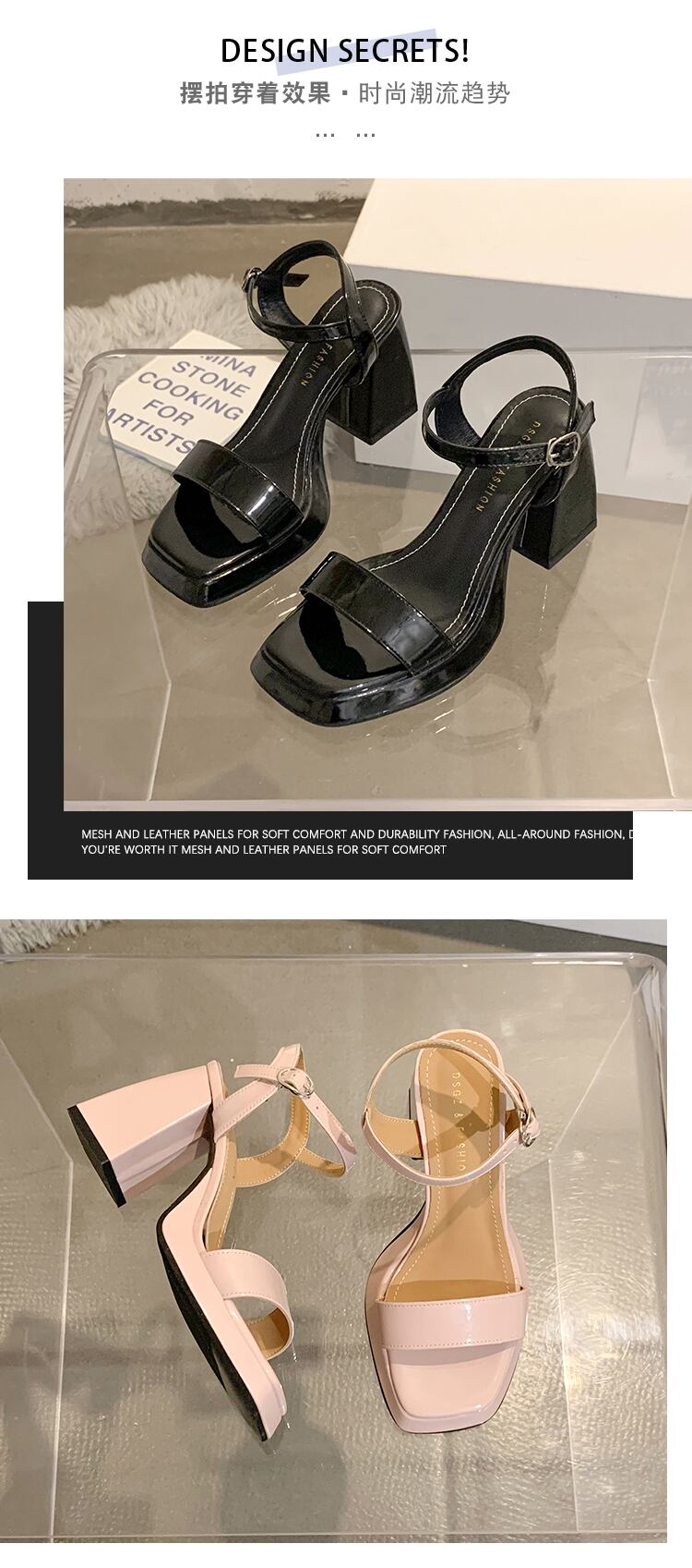 妖精風一言サンダル女性2022年夏新厚ヒールネットレッドファッションオールマッチスモールレトロハイヒール 靴 シューズ サマー 夏物 jxjxf24159796645