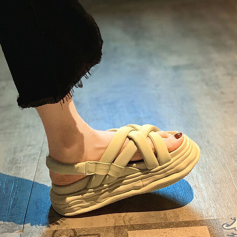 レトロなワンワードビーチサンダル女性の2022年夏の新しいクロス厚底滑り止めスーパーファッションオールマッチサンダルとスリッパ ミュール 靴 シューズ サマー 夏物 jxjxf81269911675