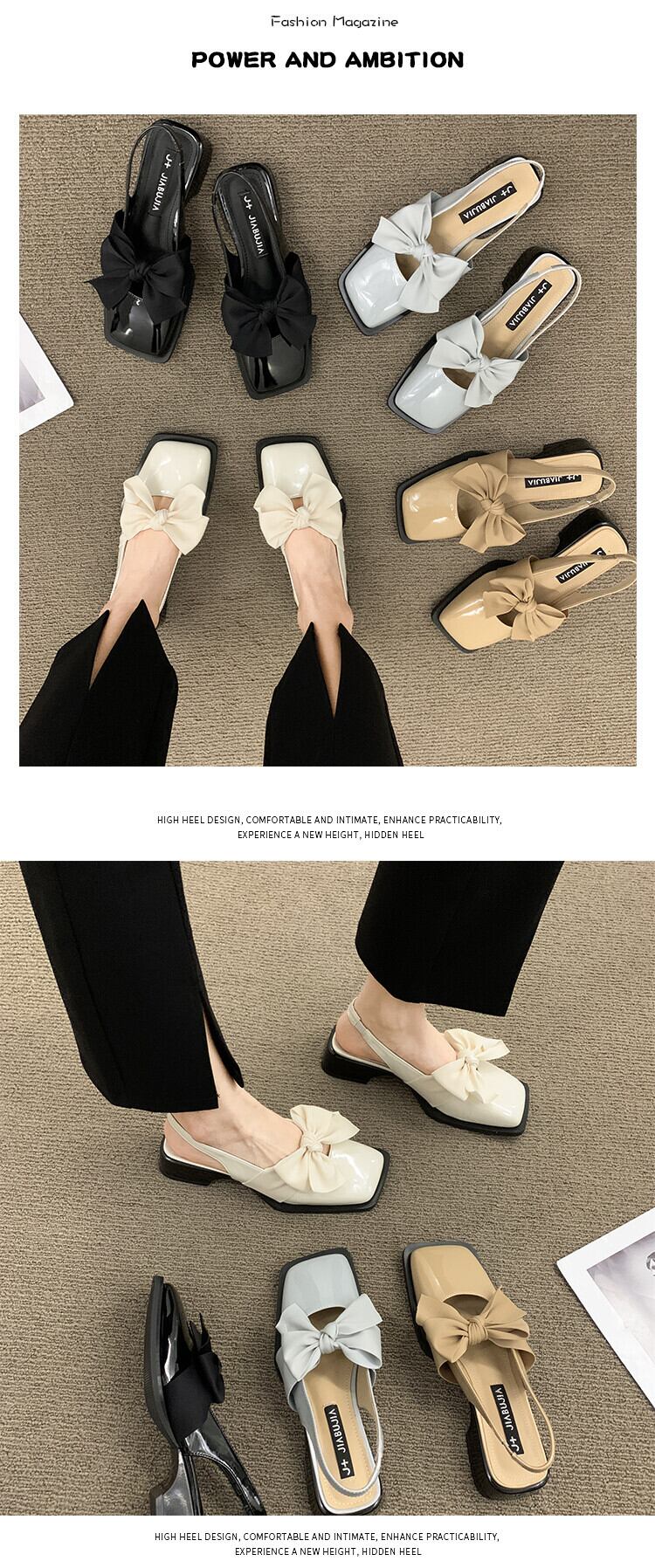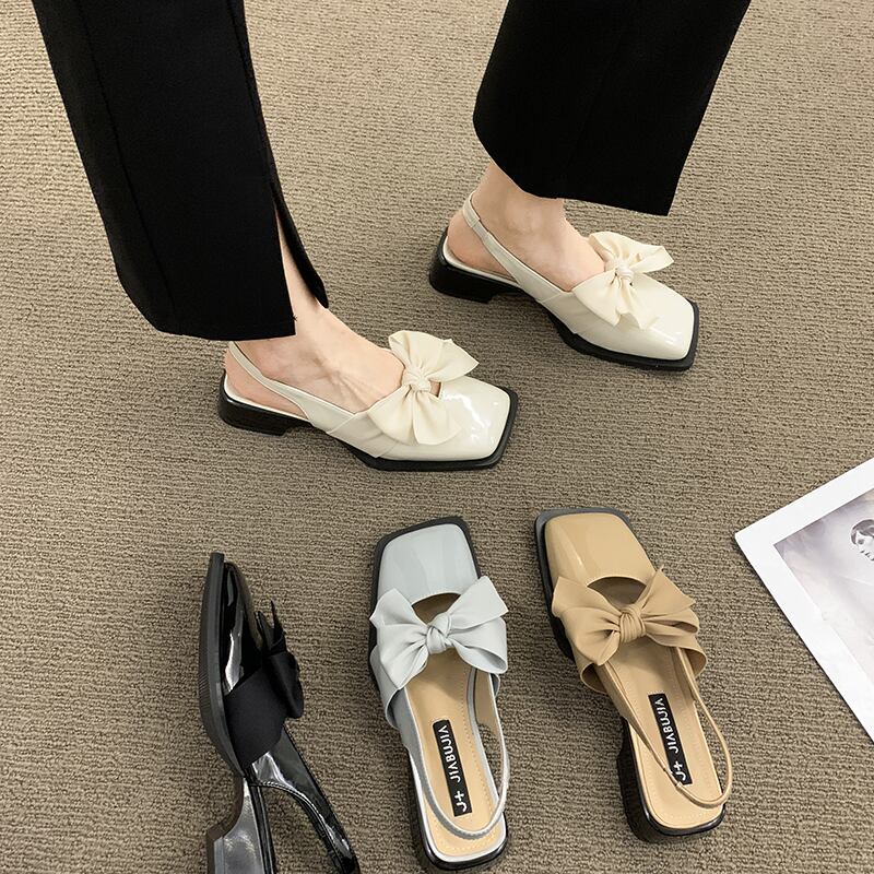 包頭サンダルレディース2022夏の新しいファッションオールマッチかわいい弓ローヒール滑り止めスクエアトゥスモールレザーシューズ 靴 リボン 大人ガーリー スウィート キュート カジュアル サマー 夏物 スクウェア jxjxf27061996705