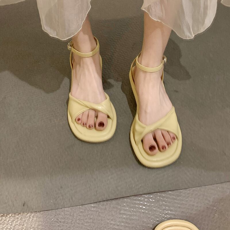 サンダルレディーススカート2022年夏の新作ファッションオールマッチ優しいレトロワードローヒールノンスリップローマンシューズ 靴 サマー 夏物 jxjxf2264203222