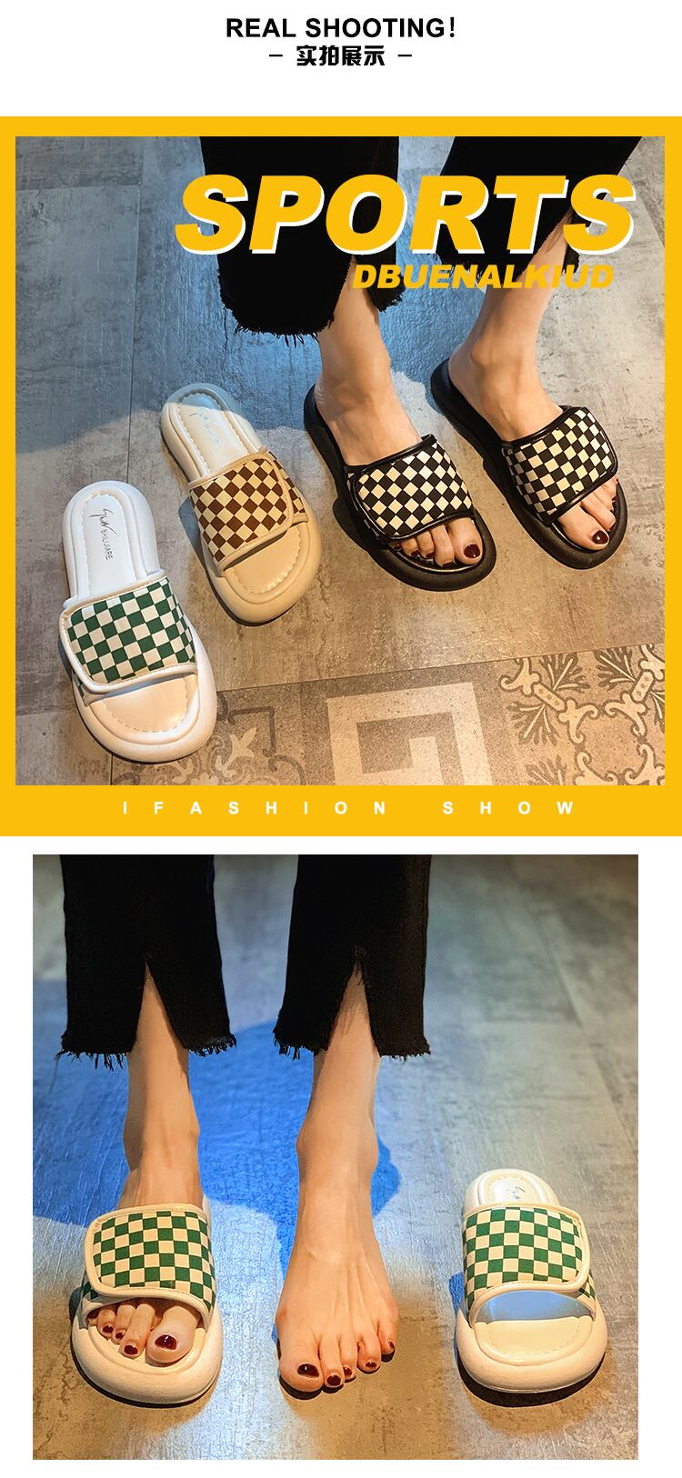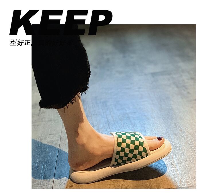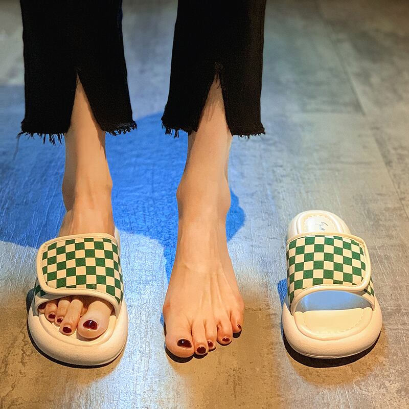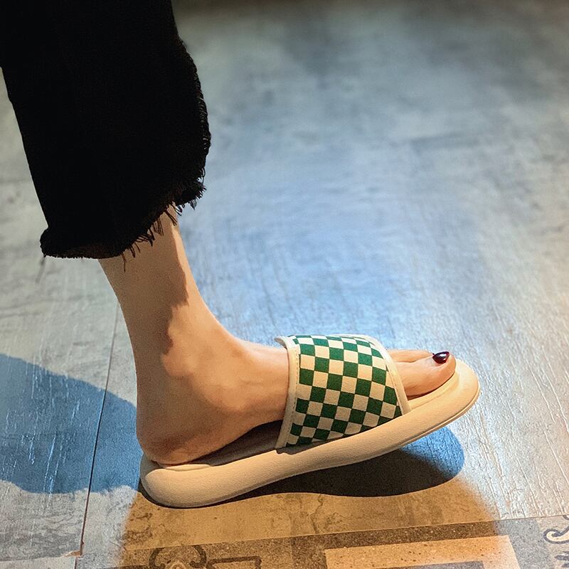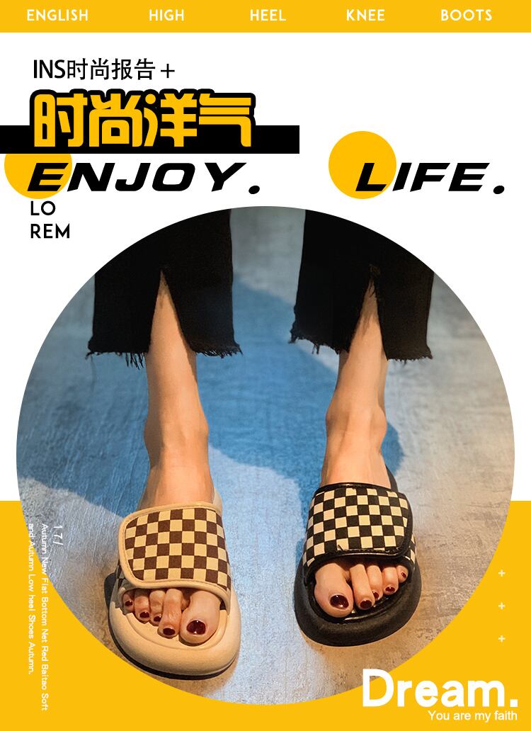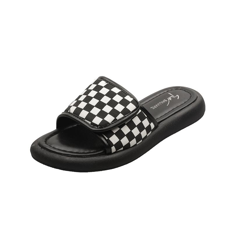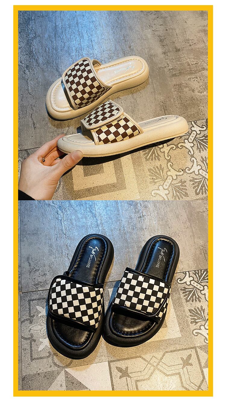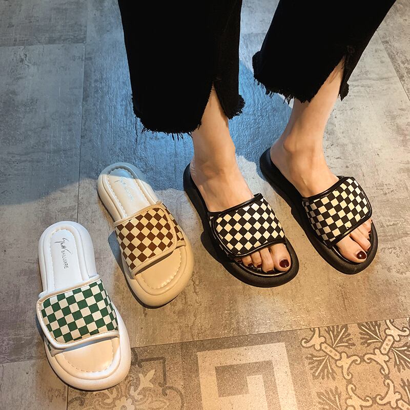 スリッパ2022新しい夏のファッションオールマッチチェッカーボードベルクロ平底滑り止め外着サンダルとスリッパ潮 ミュール 靴 シューズ サマー 夏物 jxjxf27558630039