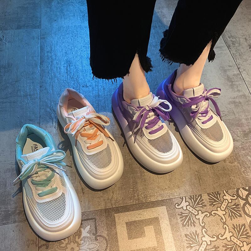 シューズレディース2022年春新しいメッシュ通気性グラデーション厚底滑り止めファッションオールマッチストリートシューティングスニーカー 靴 スプリング 春物 jxjxf36474562455