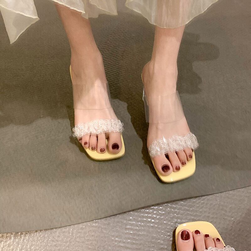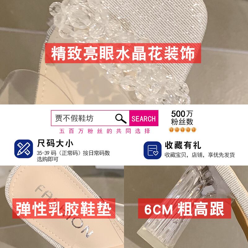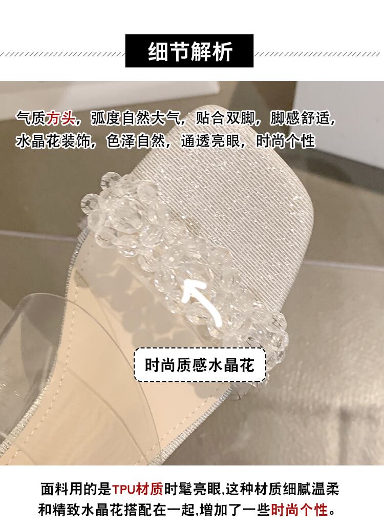 女性の2022年夏の新しいスタイルのクリスタルフラワーの厚いヒールのファッションオールマッチの妖精スタイルのフレンチスリッパ ミュール 靴 シューズ サマー 夏物 フラワーデザイン jxjxf23636813968