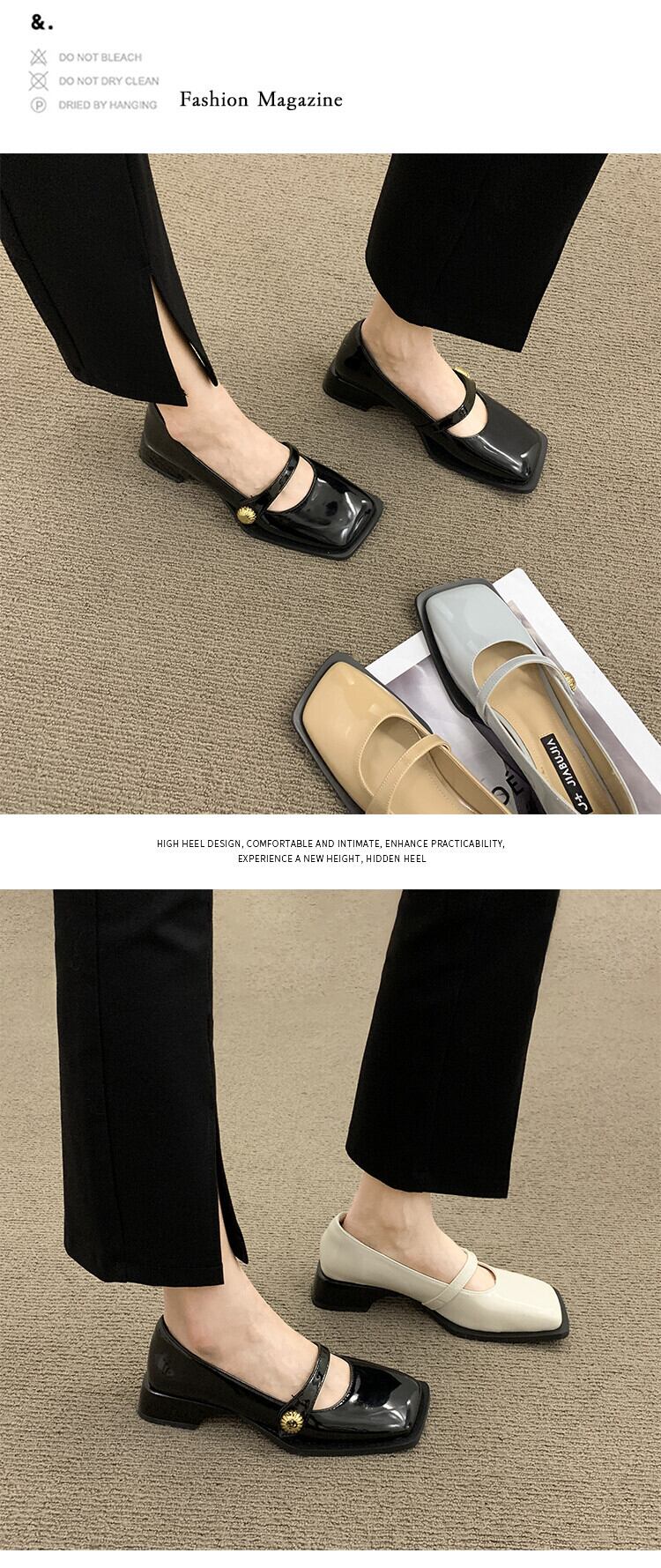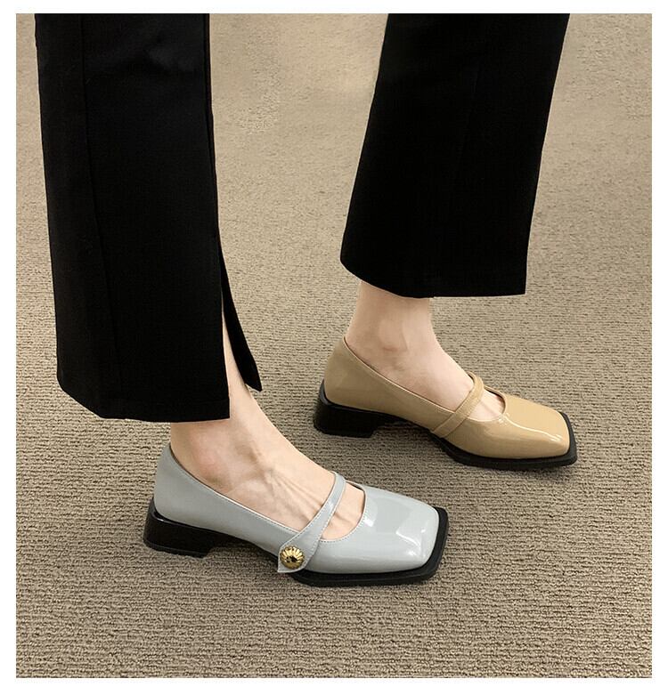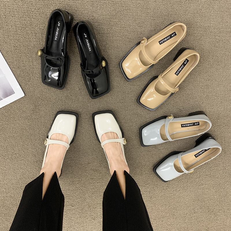 ネットレッドシングルシューズメス2022春新インスーパーファッションフレンチレトロスクエアヘッドローヒール滑り止めスモールレザーシューズタイド 靴 スプリング 春物 スクウェア jxjxf10700829077