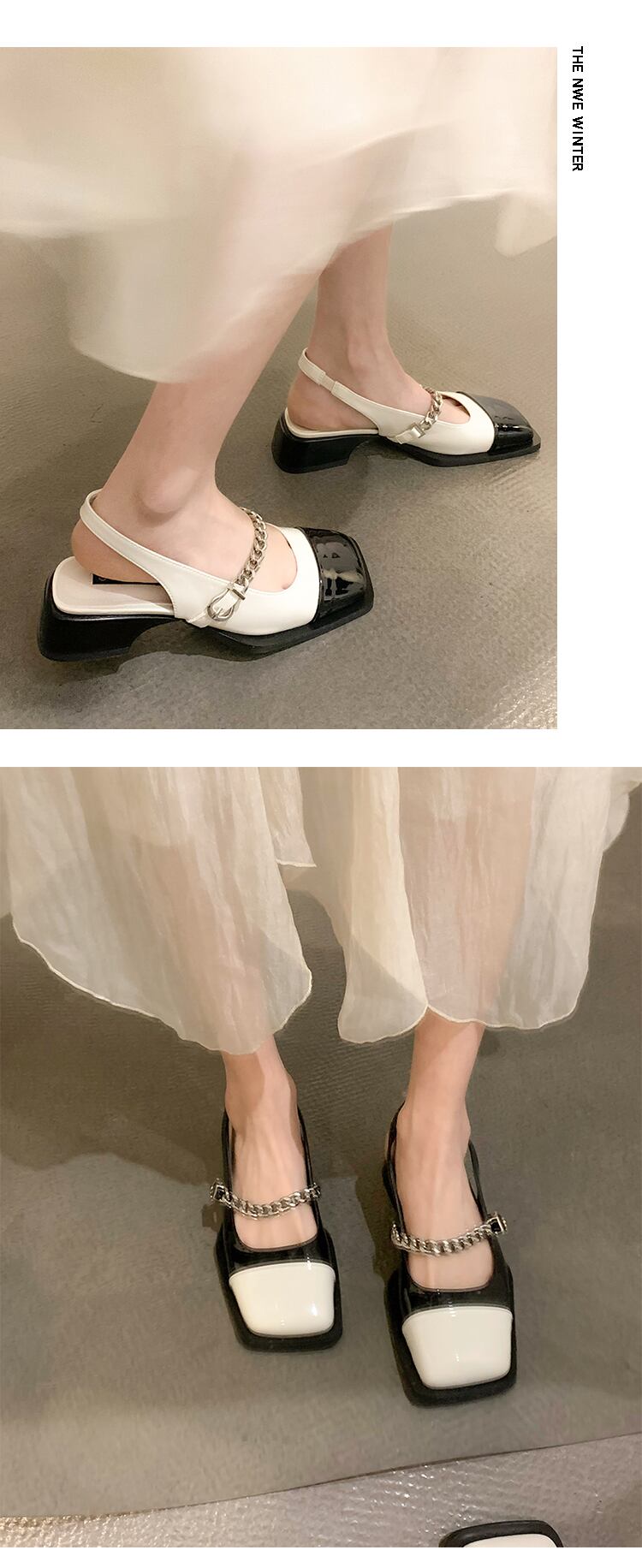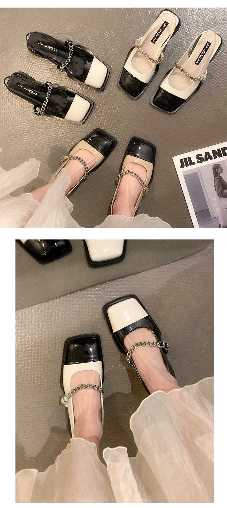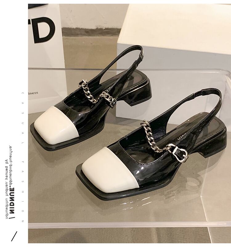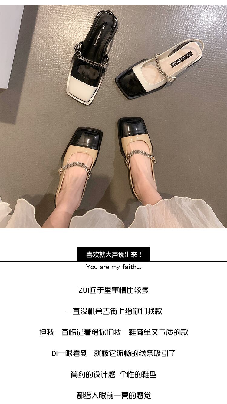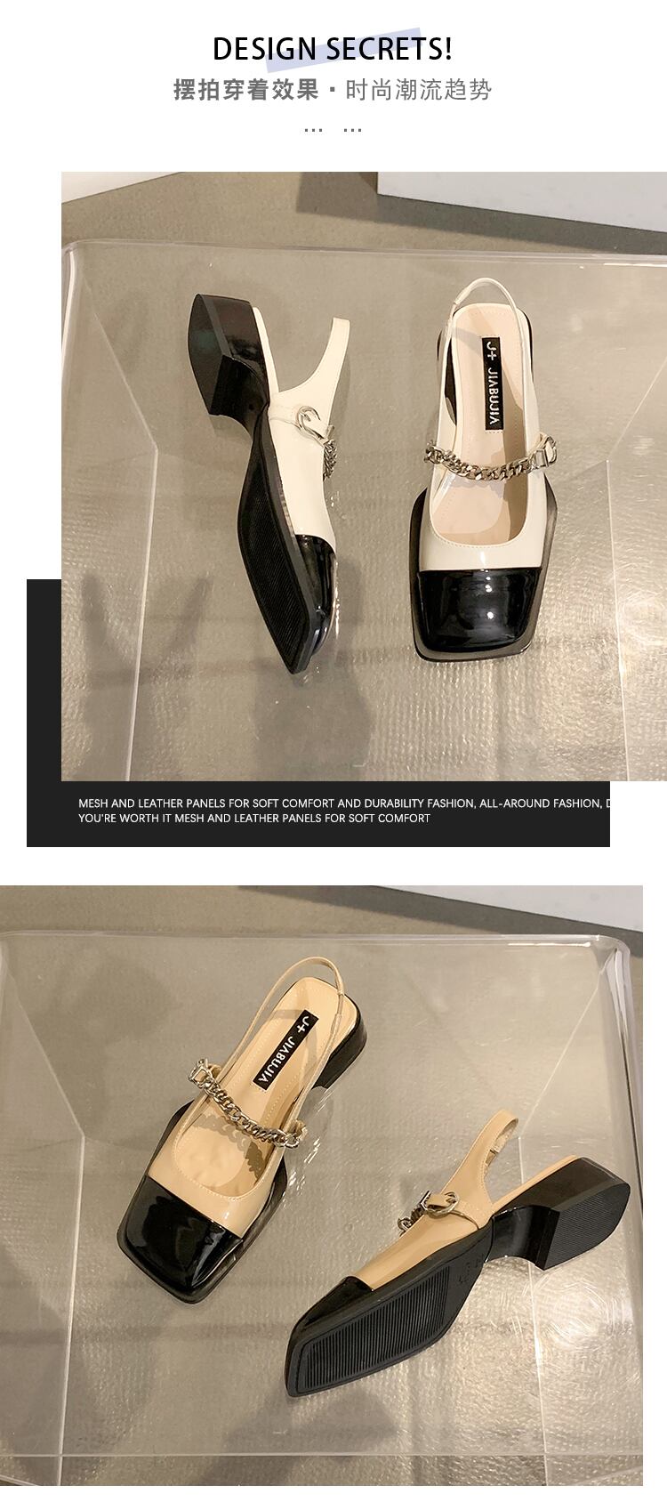 JiaBuフェイク包頭サンダルレディース2022夏ニューファッションオールマッチレトロチェーンローヒール滑り止めスモールレザーシューズ 靴 サマー 夏物 jxjxf12917931848