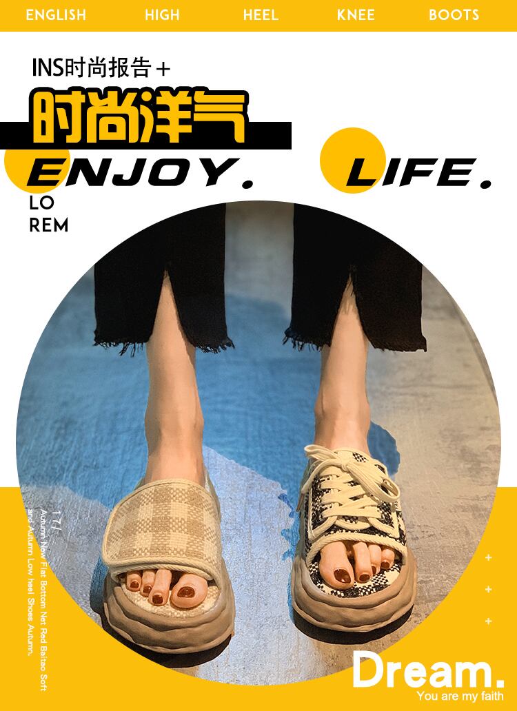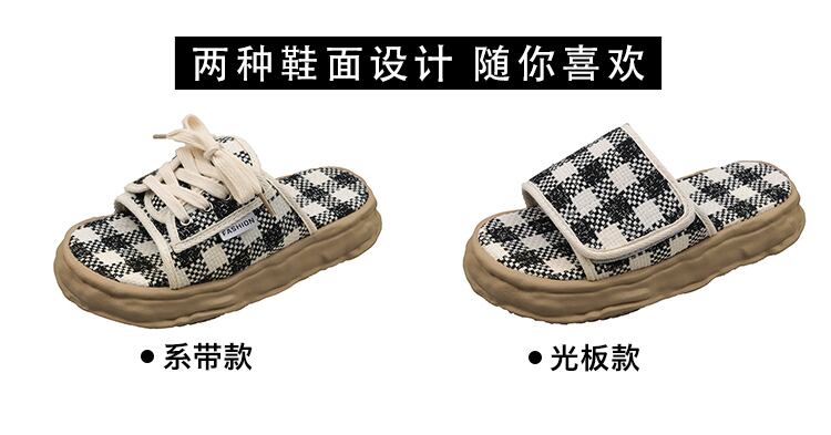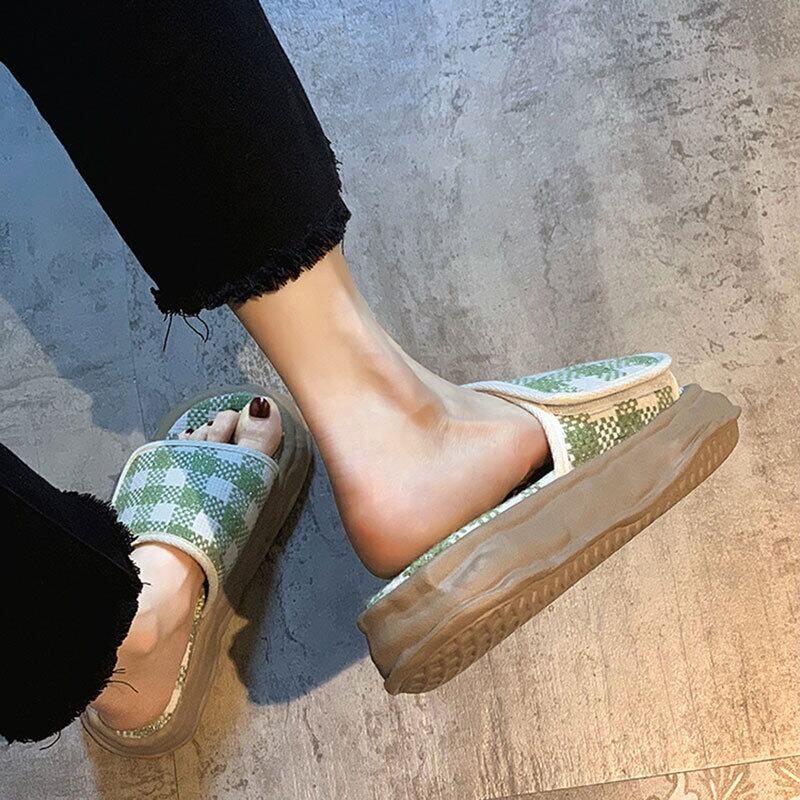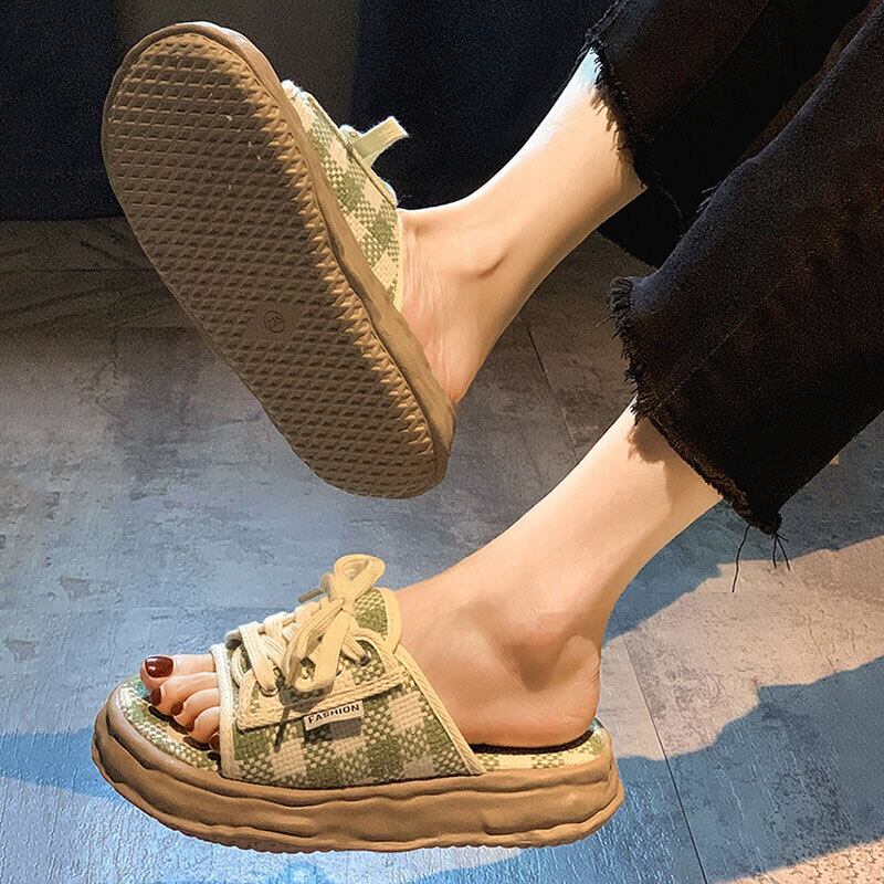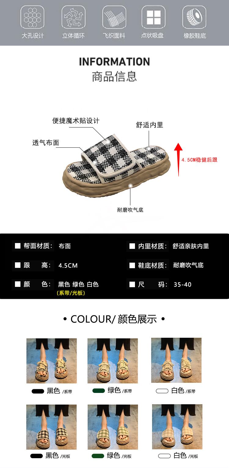 一言ビーチサンダル2022年夏の女性の新しい格子縞のベルクロ厚底滑り止めファッションオールマッチディゾルブスリッパ ミュール 靴 シューズ サマー 夏物 jxjxf6864931379