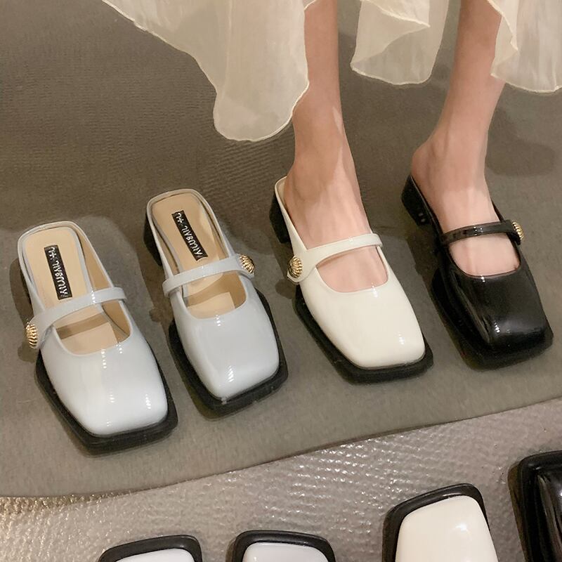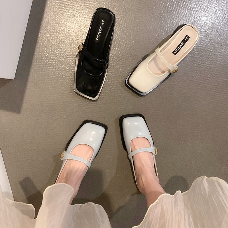 包頭ドラッグ女性サマーウェア2022新しいネットレッドファッションレトロローヒール滑り止めスクエアヘッドサンダルとスリッパinstide ミュール 靴 シューズ 夏物 スクウェア jxjxf89364088887