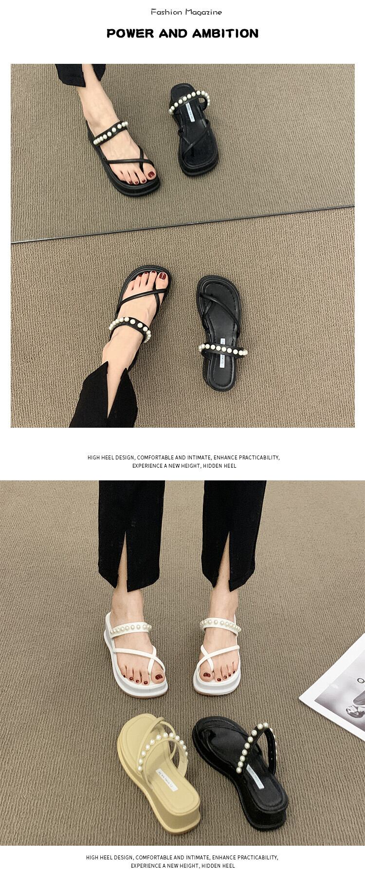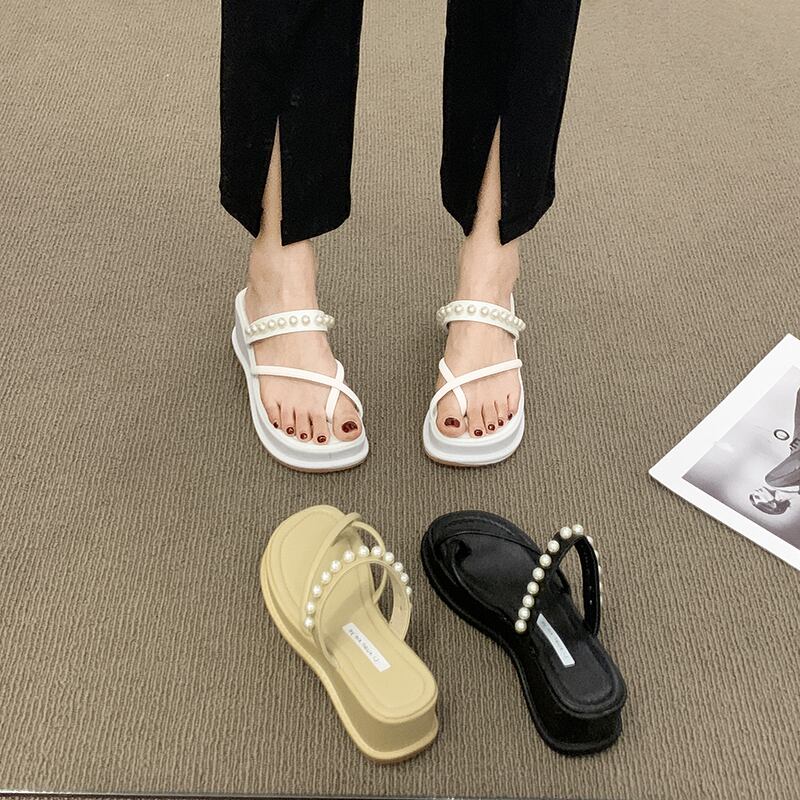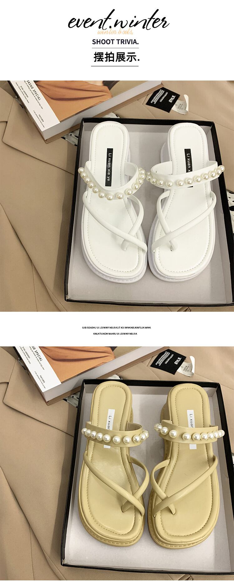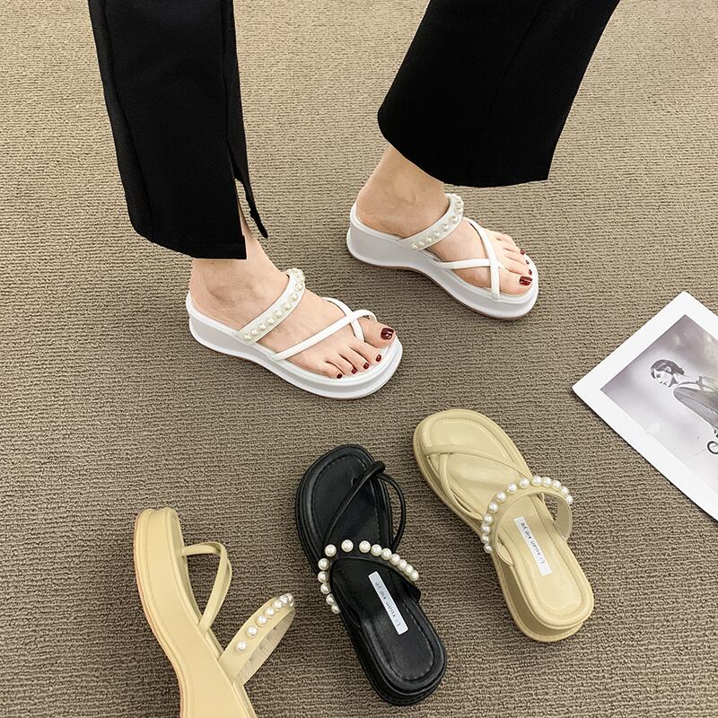 セットトゥスリッパレディース2022年夏の新しいパールウェッジ、滑り止めネットレッドファッションオールマッチレトロサンダルとスリッパ ミュール 靴 シューズ サマー 夏物 真珠 jxjxf78894760141