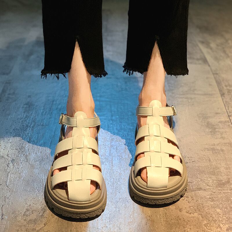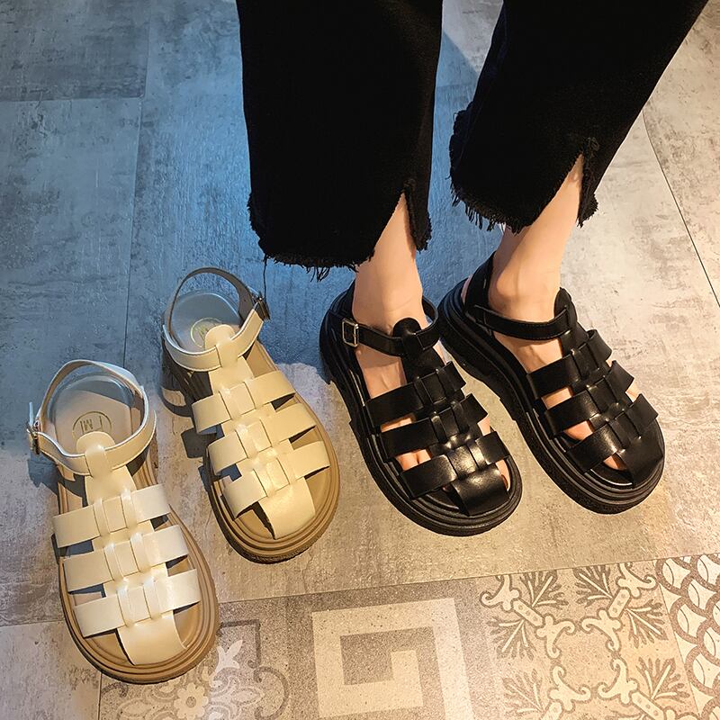 レトロなローマの靴の女性の2022年夏の新しい厚い底ネット赤スーパーファッションオールマッチ小さなつま先のサンダル シューズ レッド サマー 夏物 jxjxf48662655386