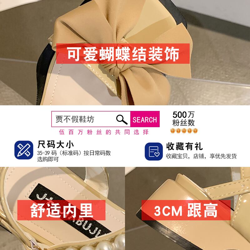 サンダルレディースサマーファッション2022新しいレトロワイルドパールボウローヒール滑り止めローマ靴 シューズ リボン 夏物 真珠 jxjxf25214123855