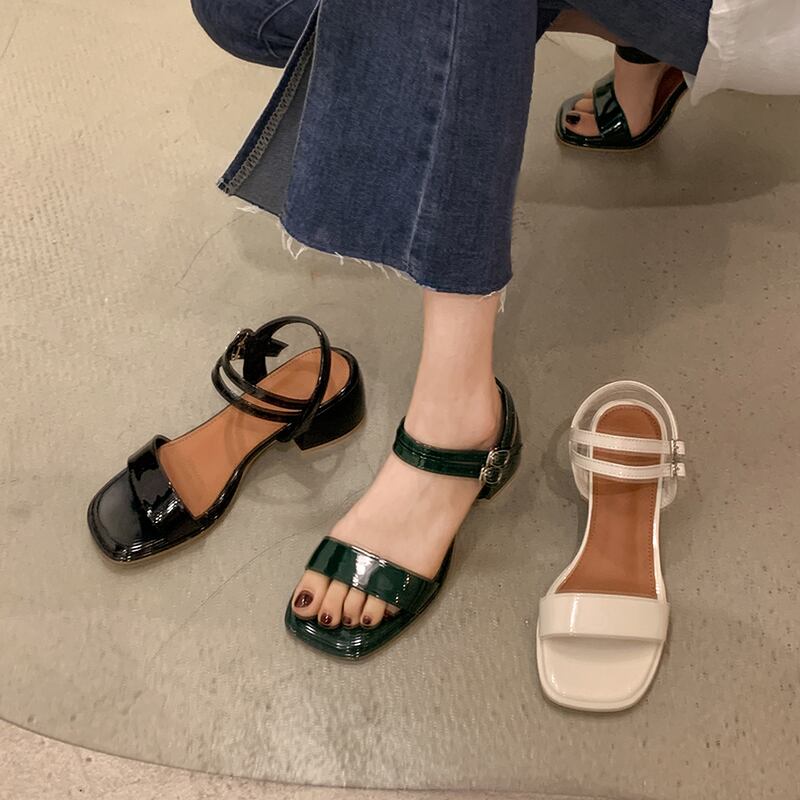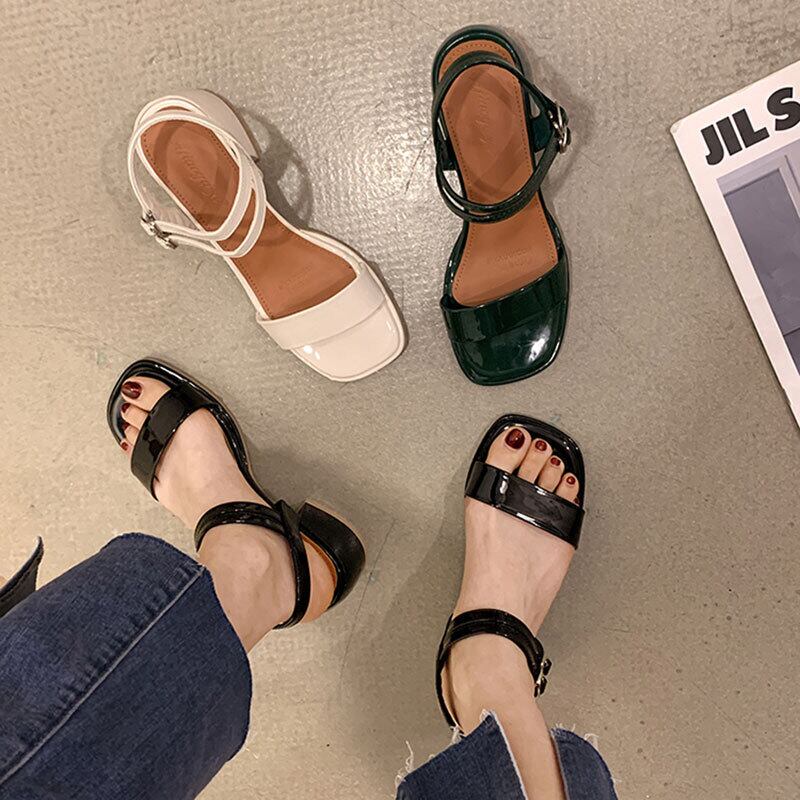 ローマのサンダルレディース2022年夏の新しいバックル厚いヒール滑り止めネット赤いファッションワイルドレトロ一言ハイヒール レッド 靴 シューズ サマー 夏物 jxjxf60213628198