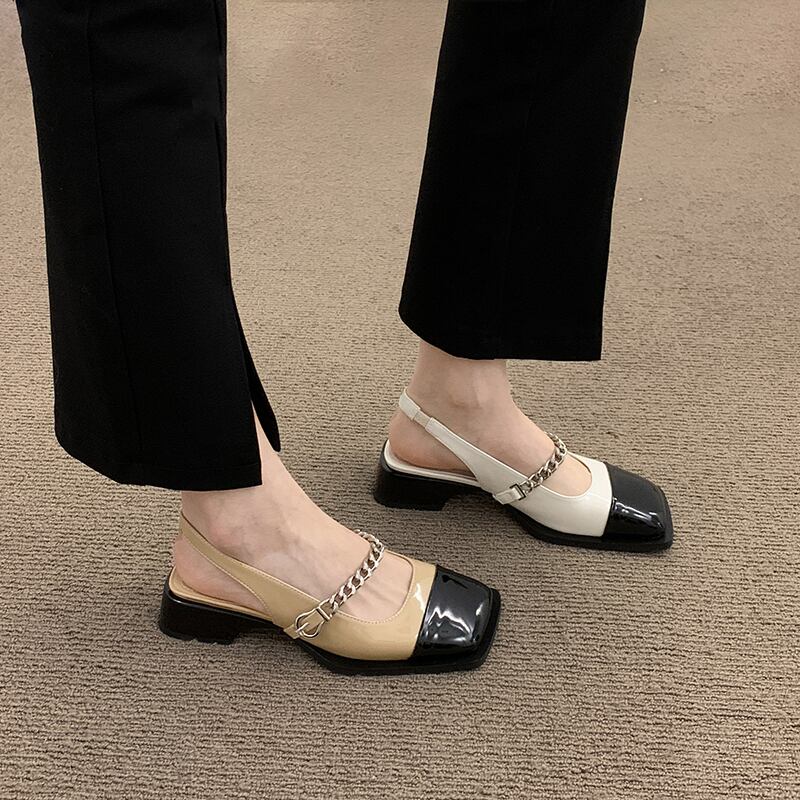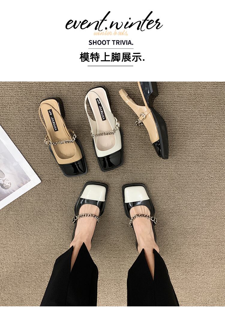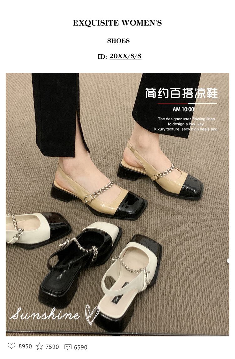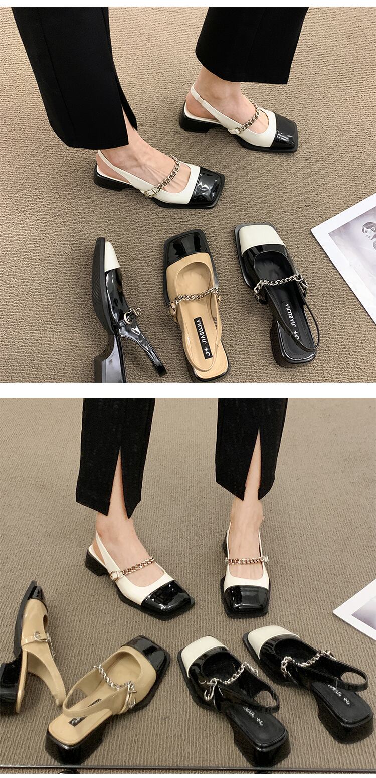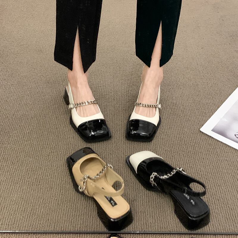 レトロ包頭サンダルレディース2022夏ニューチェーンローヒールノンスリップファッションオールマッチインタイドスモールレザーシューズ 靴 サマー 夏物 jxjxf44970286739