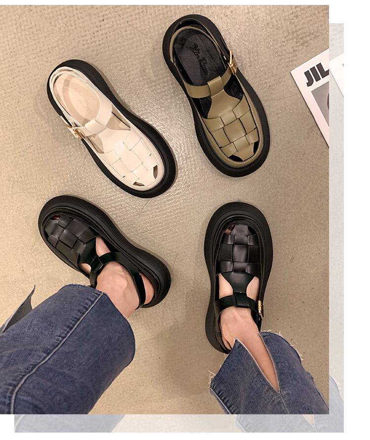 包頭サンダルレディース2022夏新作ファッションオールマッチレトロ織りバックルスポンジケーキ厚底滑り止めビーチシューズ 靴 サマー 夏物 jxjxf43717288296