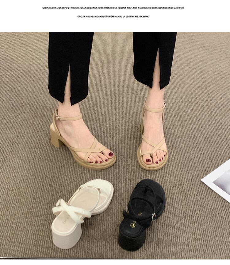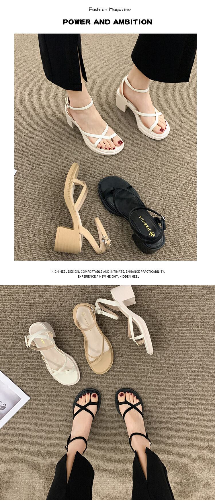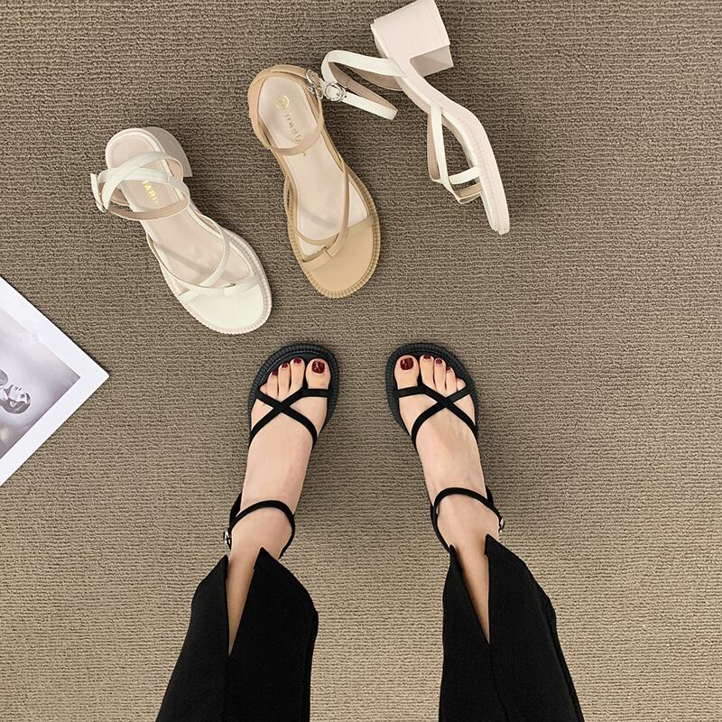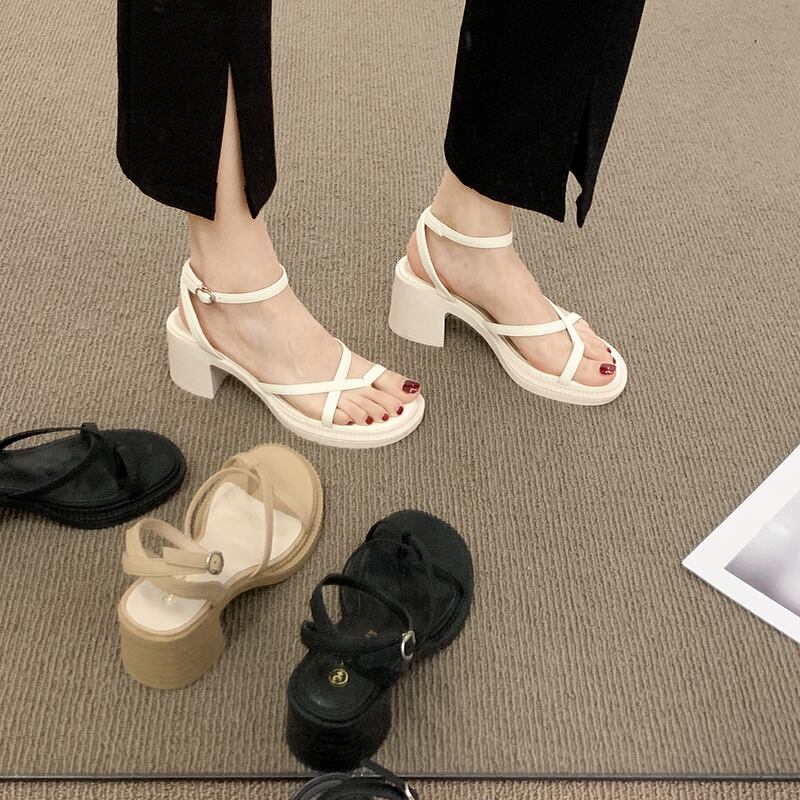 つま先のサンダルのセット女性の2022年夏の新しい厚いヒール滑り止めファッションオールマッチ小さなフランスのレトロなハイヒール 靴 シューズ サマー 夏物 jxjxf73824854729