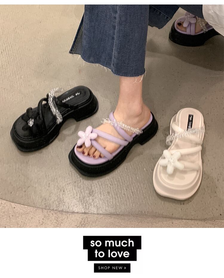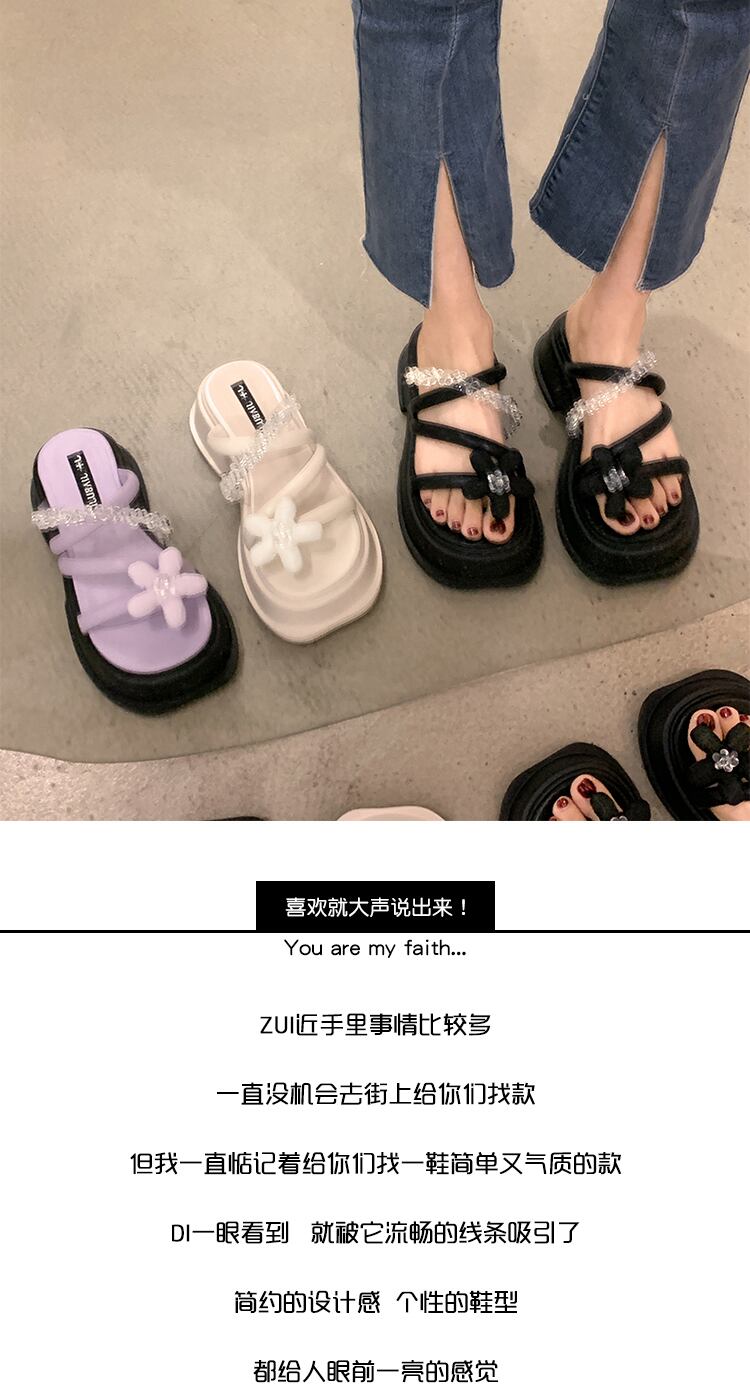 2022年夏の妖精スタイルのスリッパの女性、新しい花、厚いかかと、滑り止めのファッション、オールマッチのレトロなビーチサンダル ヒール 靴 シューズ ミュール サマー 夏物 フラワーデザイン jxjxf34223296177