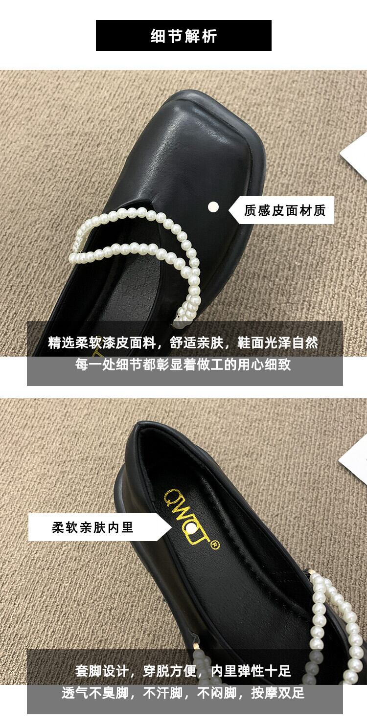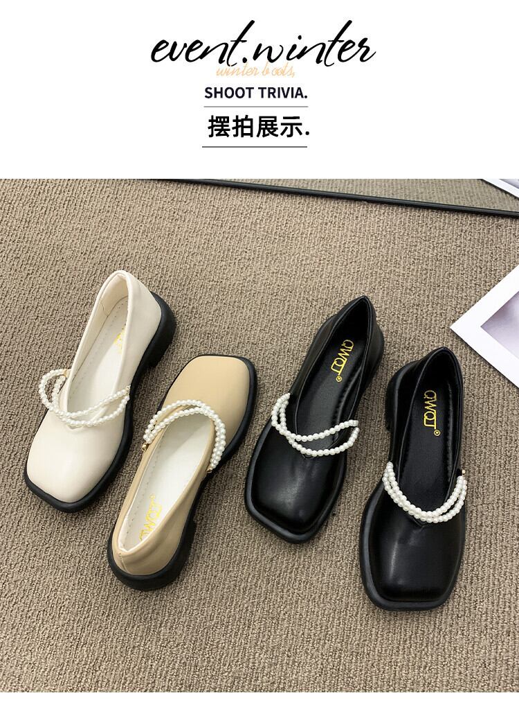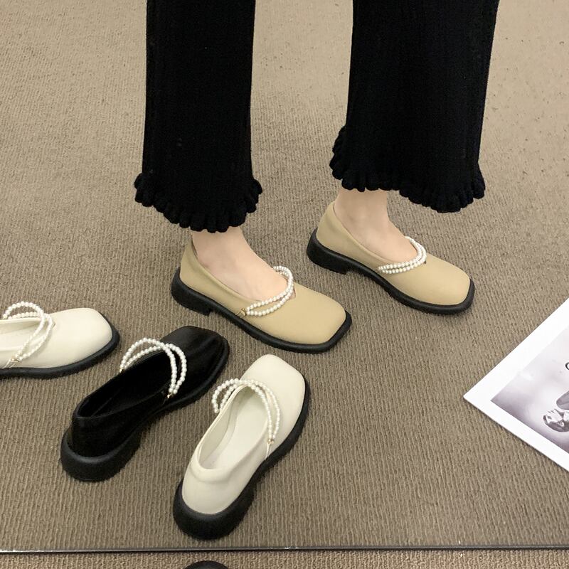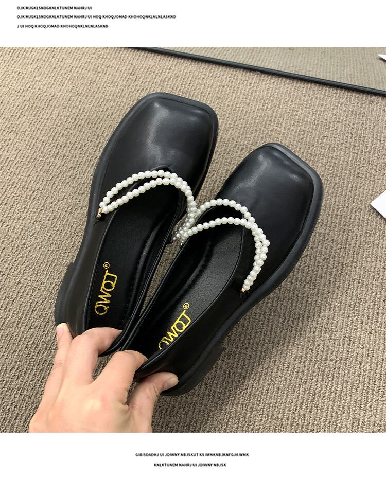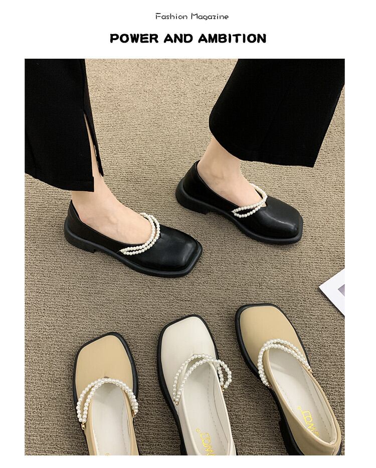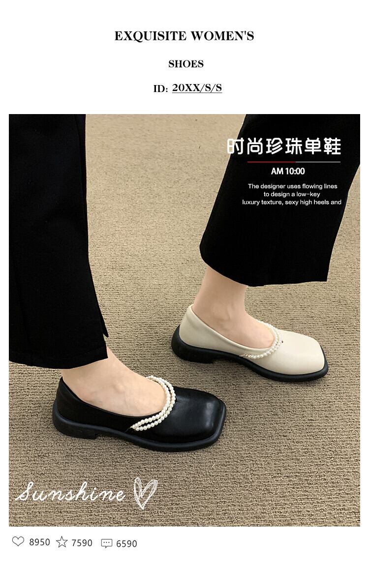 スクエアトゥシングルシューズレディース2022年春新しいスーパーファッションレトロパール浅い口ローヒール滑り止めスモールレザーシューズタイド 靴 スプリング 春物 真珠 スクウェア jxjxf40344308746