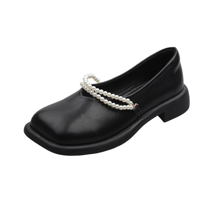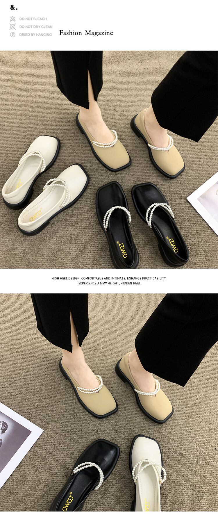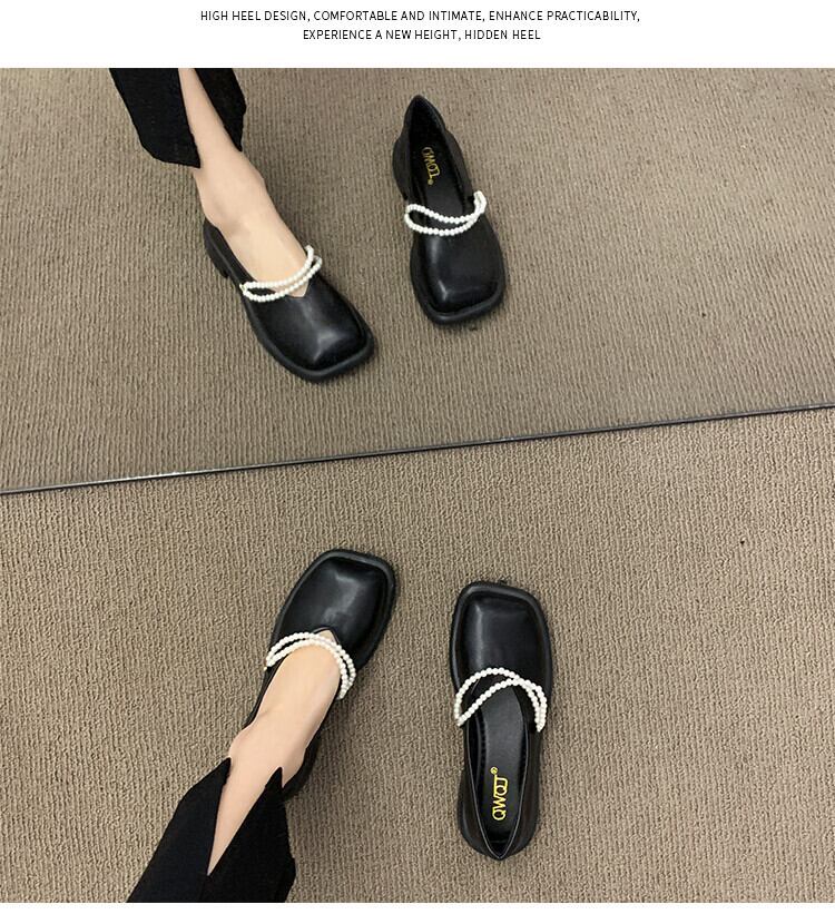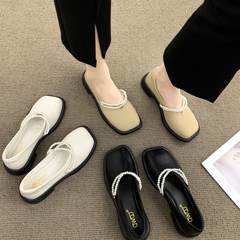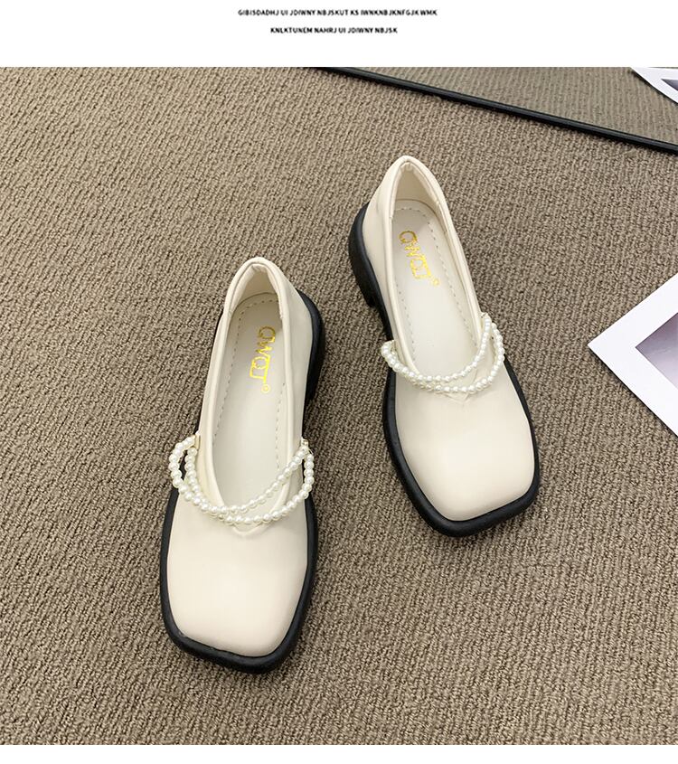 スクエアトゥシングルシューズレディース2022年春新しいスーパーファッションレトロパール浅い口ローヒール滑り止めスモールレザーシューズタイド 靴 スプリング 春物 真珠 スクウェア jxjxf40344308746