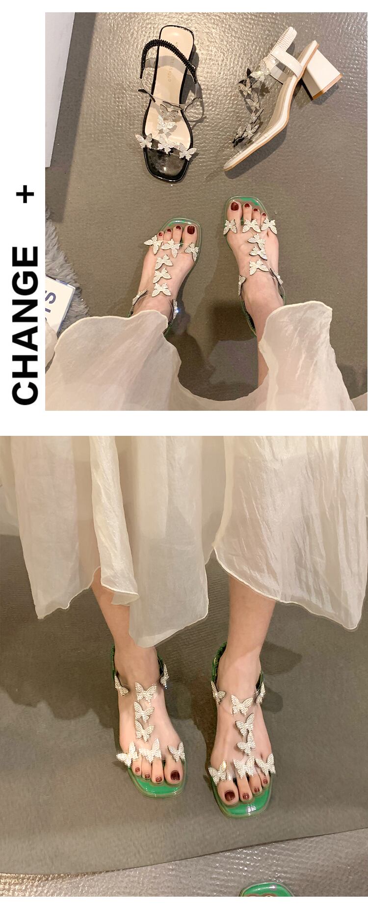ローマのサンダルレディース2022年夏の新しい透明なラインストーンの厚いヒールのファッションオールマッチの妖精スタイルのレトロなハイヒール 靴 シューズ サマー 夏物 jxjxf86727227376