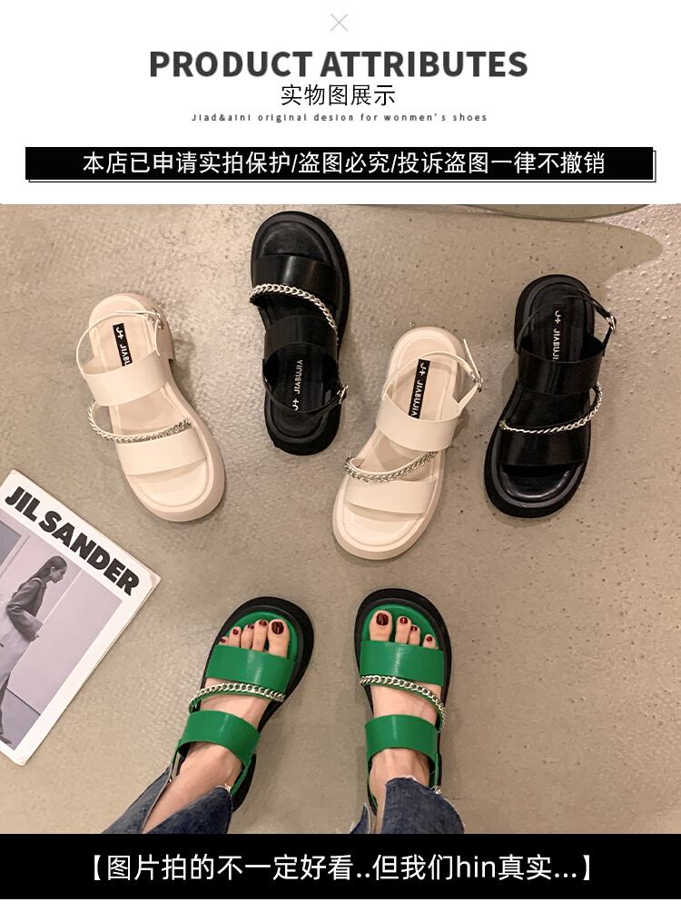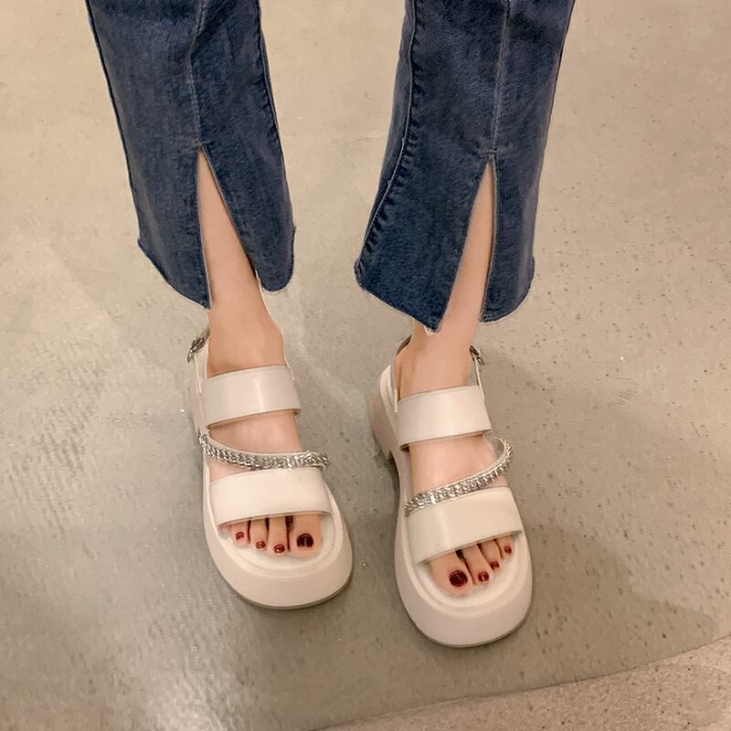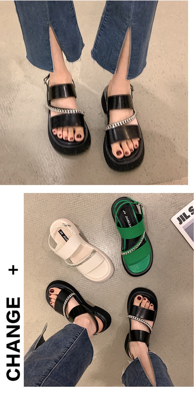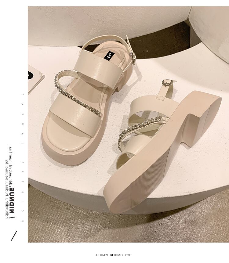レトロサンダルレディース2022夏新チェーン太いヒール滑り止めスーパーファッションオールマッチインタイドローマの靴 シューズ サマー 夏物 jxjxf82954130299