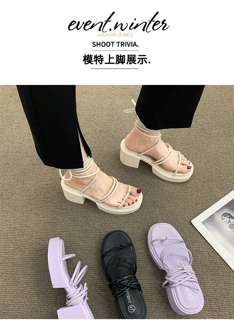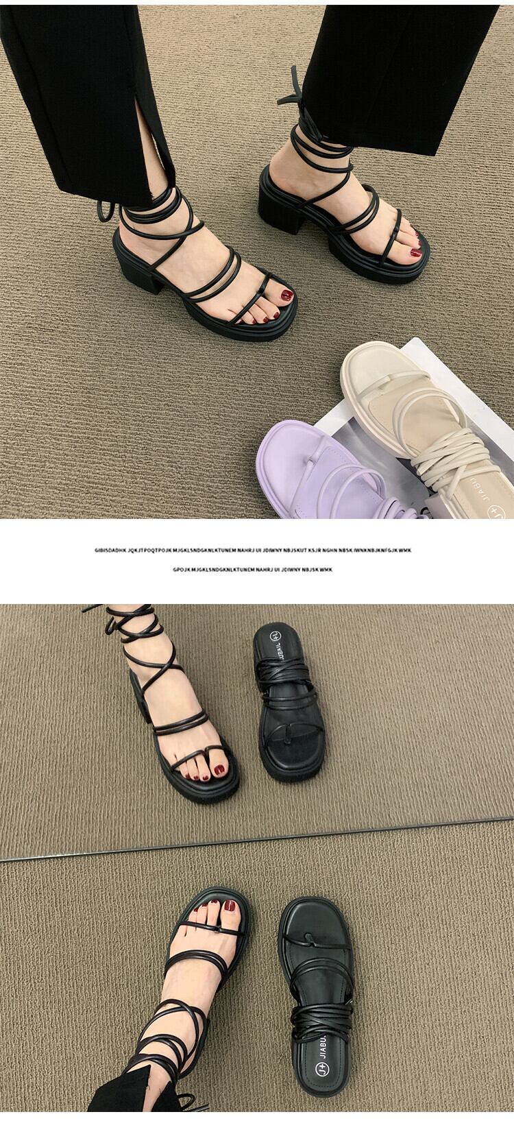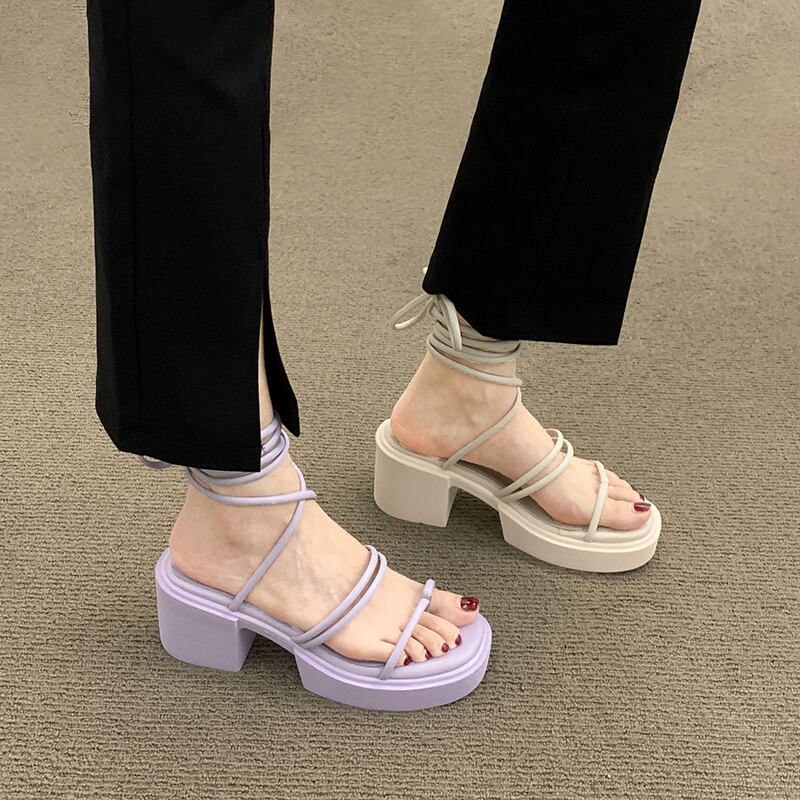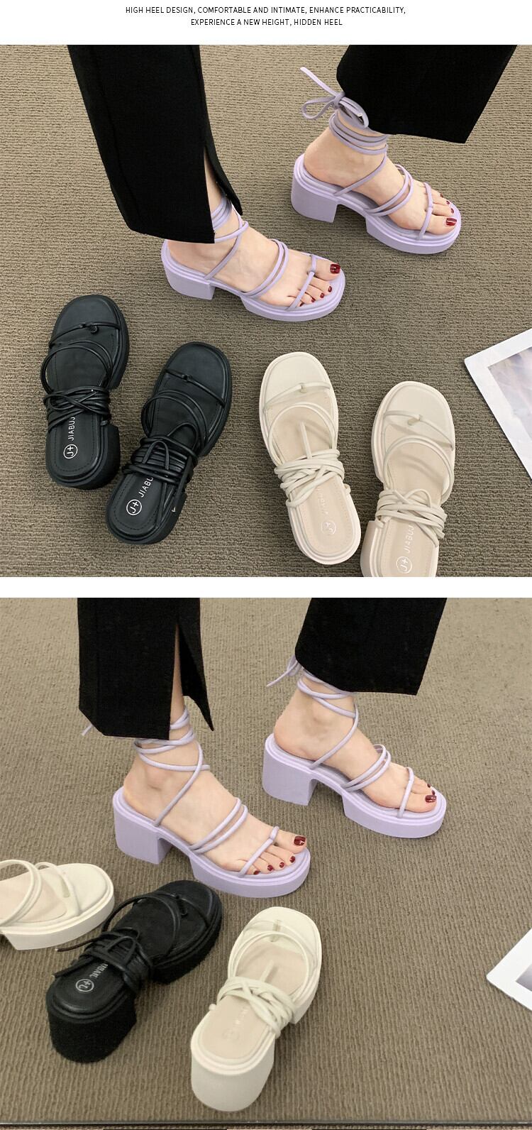 ローマのサンダルレディース2022年夏の新しい厚いヒール滑り止めスーパーファッションオールマッチフェアリースタイルストラップハイヒール 靴 シューズ サマー 夏物 jxjxf87584342348
