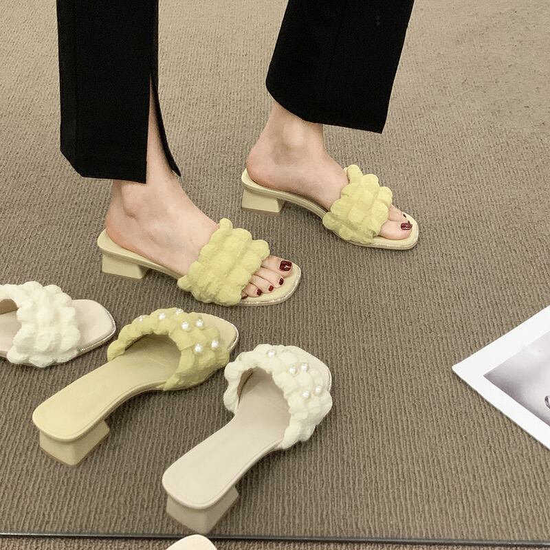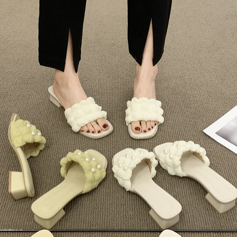 スリッパ2022サマースタイルアウター多用途レトロパールシックヒール滑り止めワンワードサンダルとスリッパ ミュール 靴 シューズ 夏物 スリッポン 真珠 jxjxf58886416167