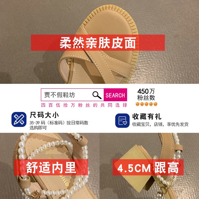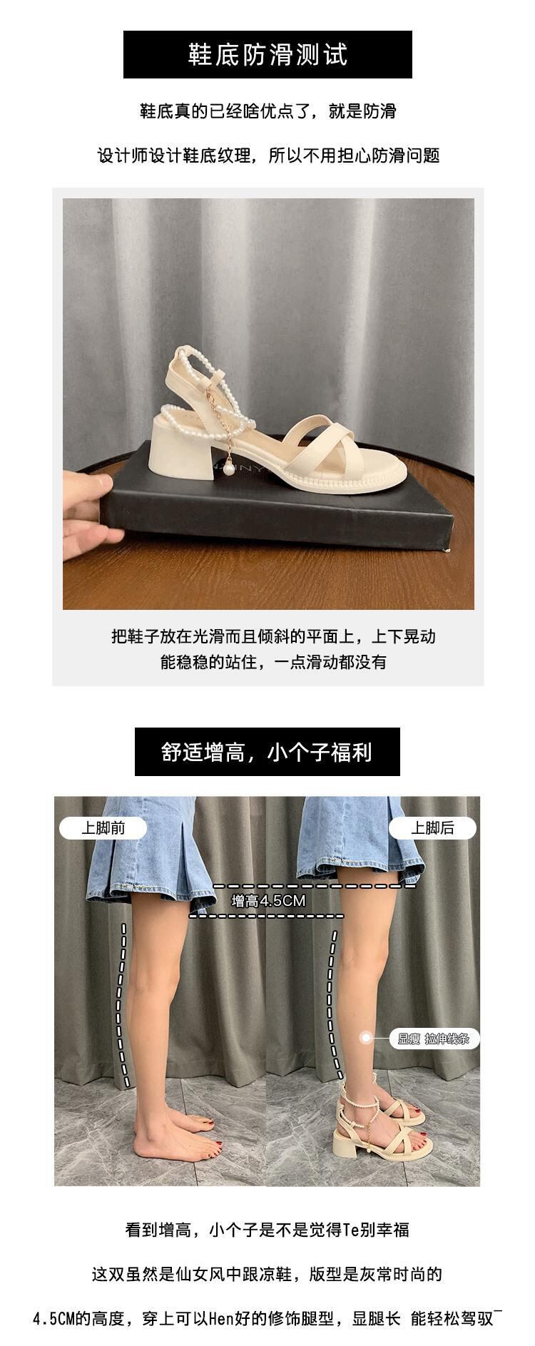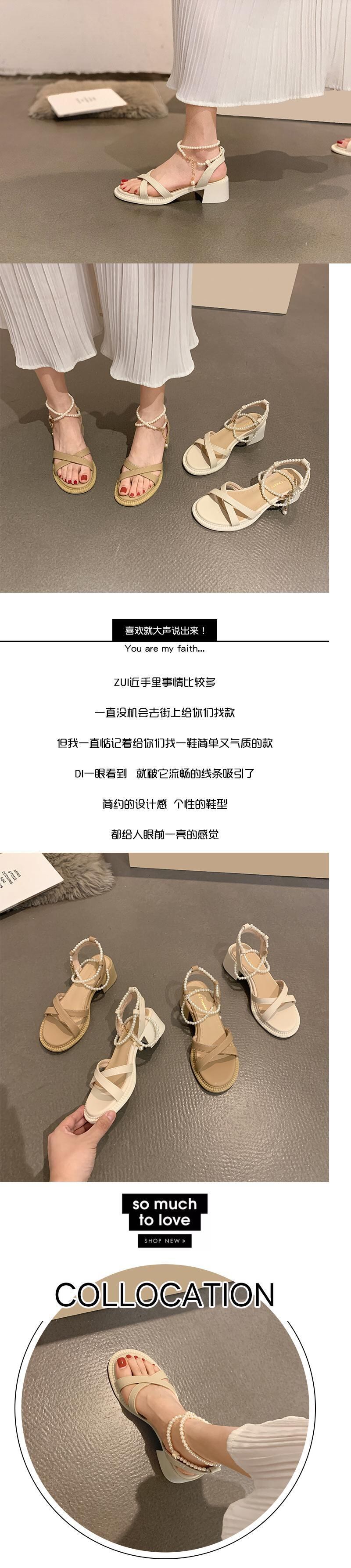 チャンキーヒールサンダルレディース2022夏の新しいクロスパールニッチ深夜の優しいフランスの妖精スタイルのハイヒール 靴 シューズ サマー 夏物 真珠 jxjxf89800907808