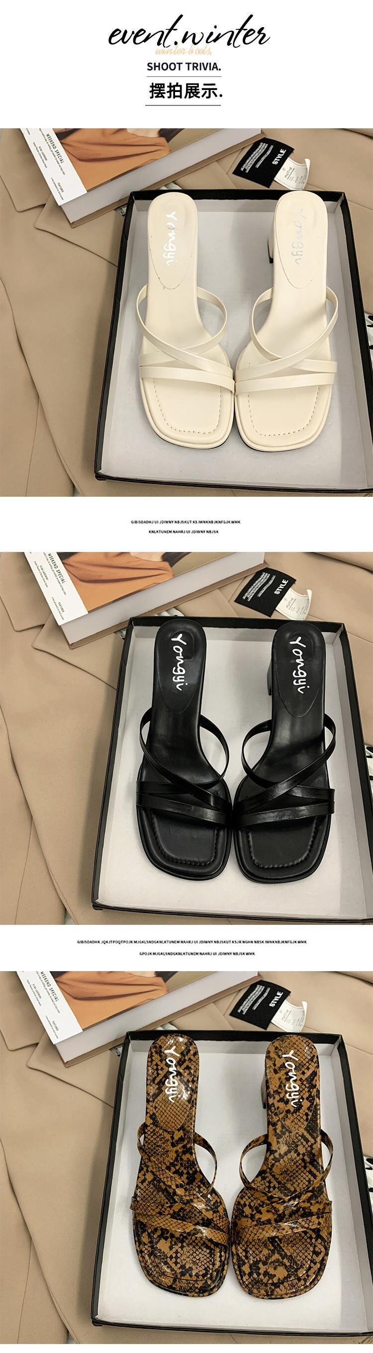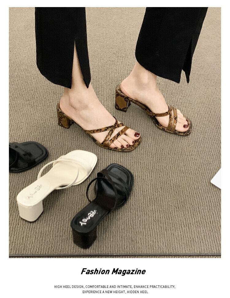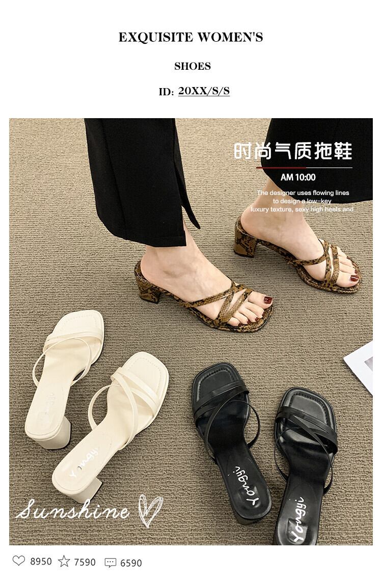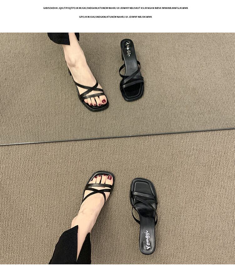 -ヒールスリッパ女性の2022年夏の新しいファッションオールマッチ小さなレトロな厚いヒール滑り止めアウターウェアサンダルとスリッパ 靴 シューズ ミュール サマー 夏物 jxjxf83383795240
