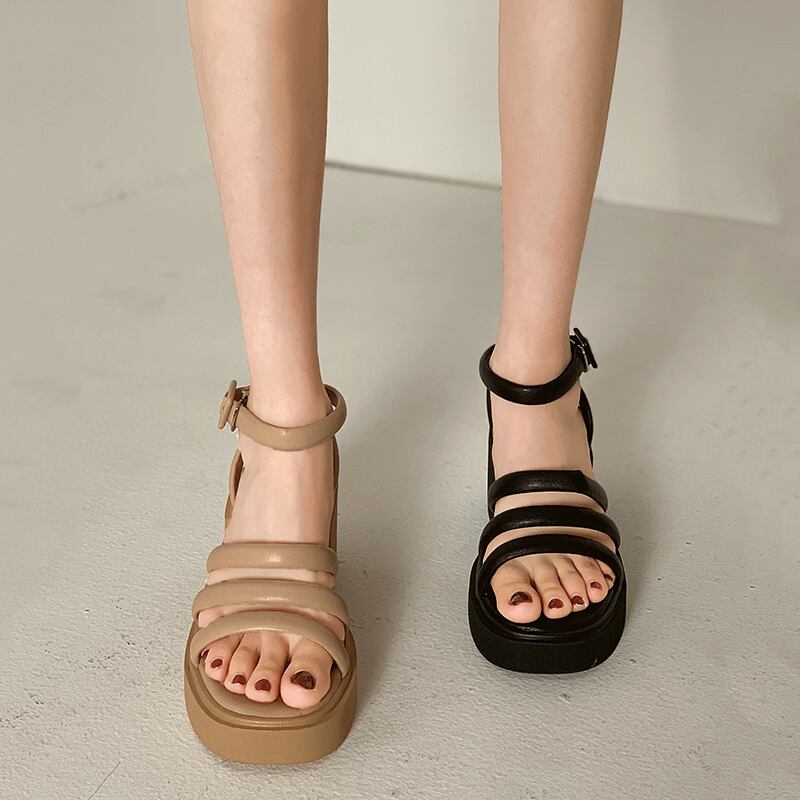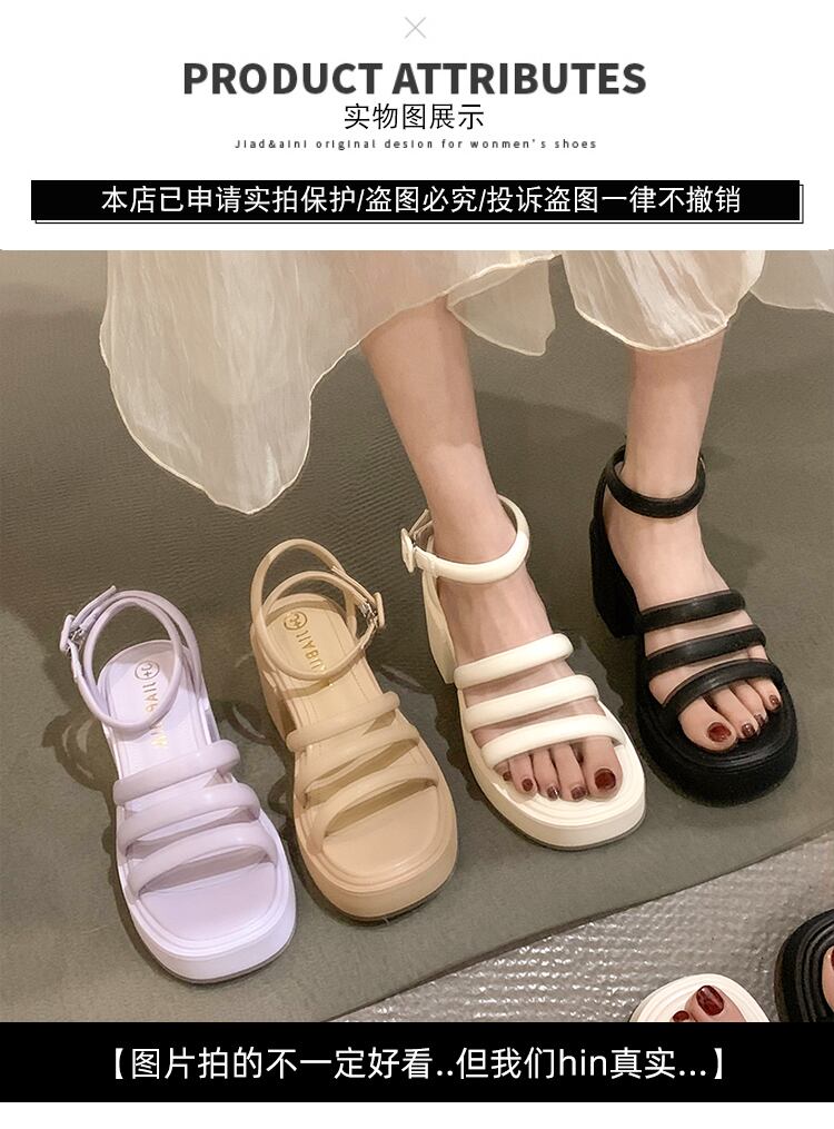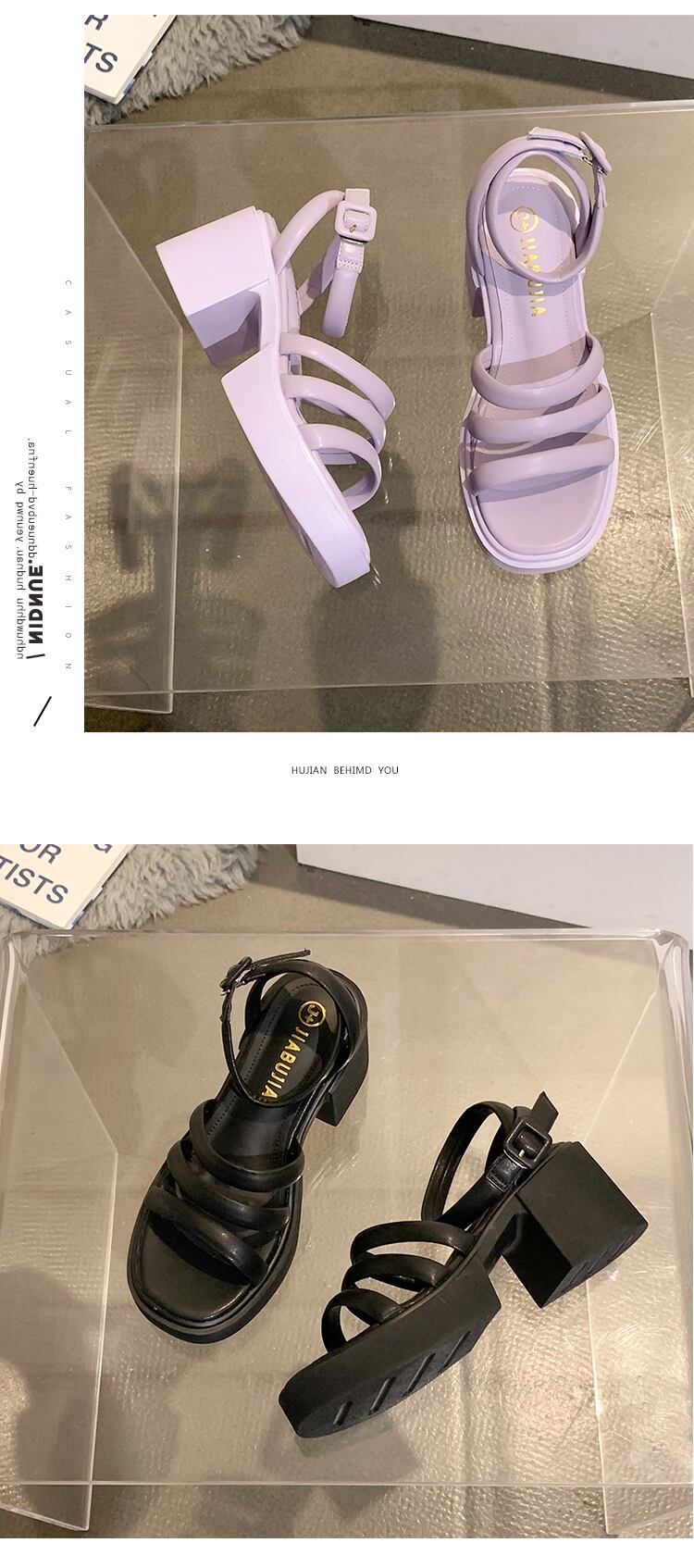 ネットレッドサンダルレディース2022夏の新しいファッションマッチングスカート小さな厚いかかと滑り止めローマの靴の潮 シューズ ヒール サマー 夏物 jxjxf4615165589