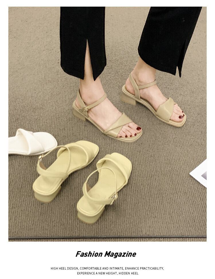 サンダルレディーススカート2022夏の新しいスーパーファッション優しいレトロな厚いヒール滑り止めローマの靴 シューズ サマー 夏物 jxjxf66693325787