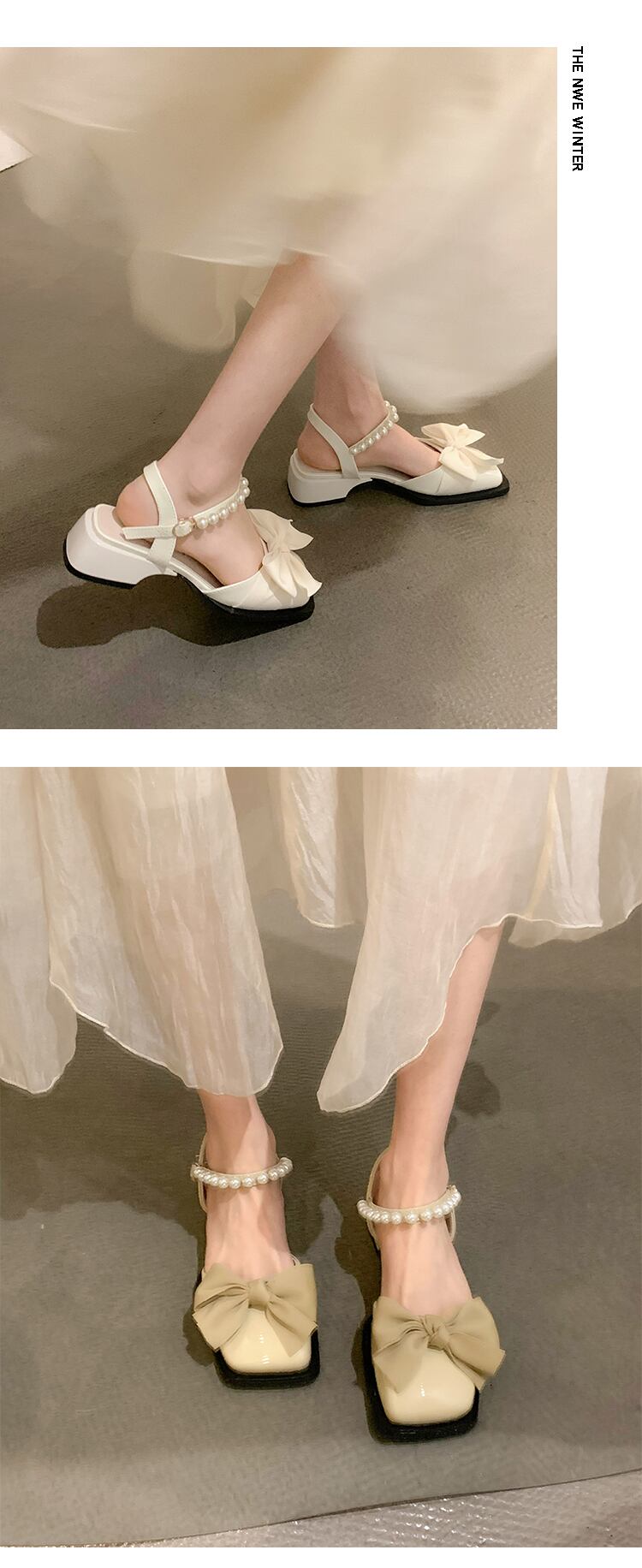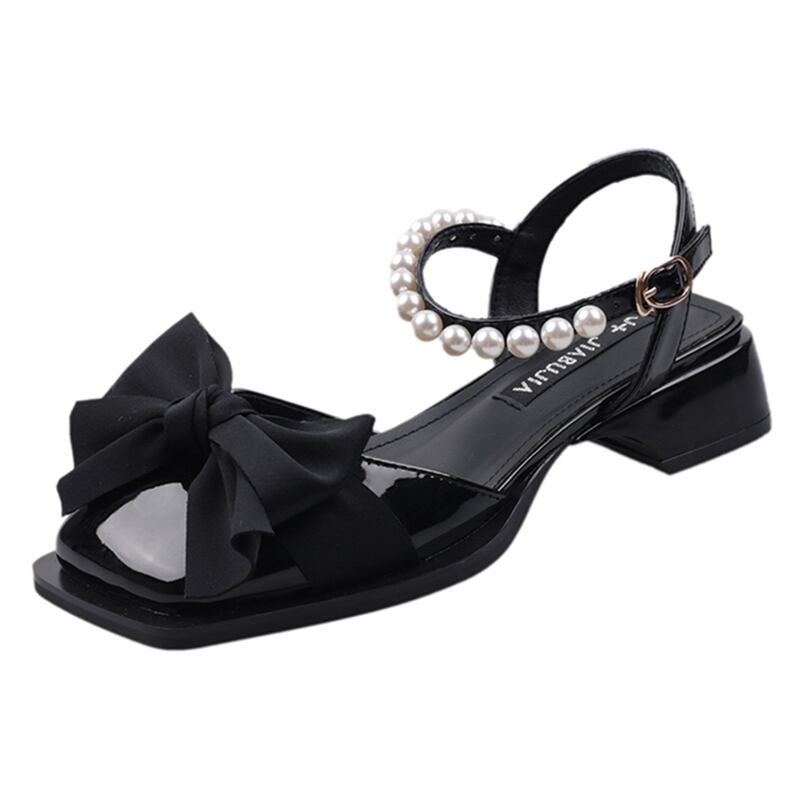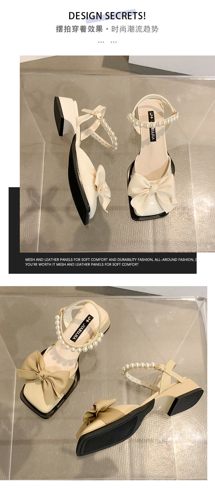 レディースファッションサンダル2022年夏ニューネットレッドスーパーオールマッチパールボウローヒール滑り止めスモールレザーシューズ 靴 リボン サマー 夏物 真珠 jxjxf87653471966