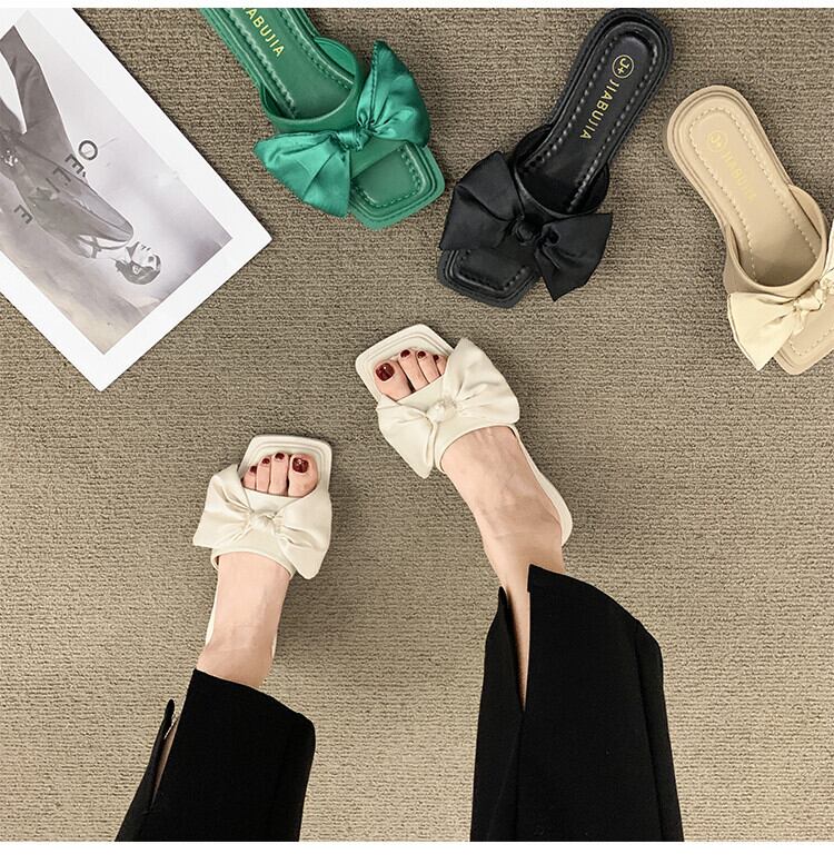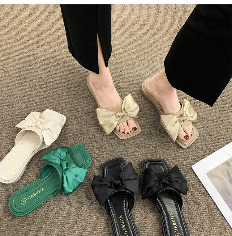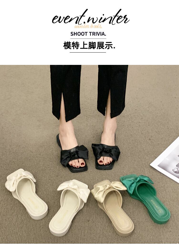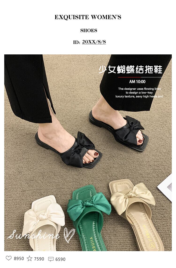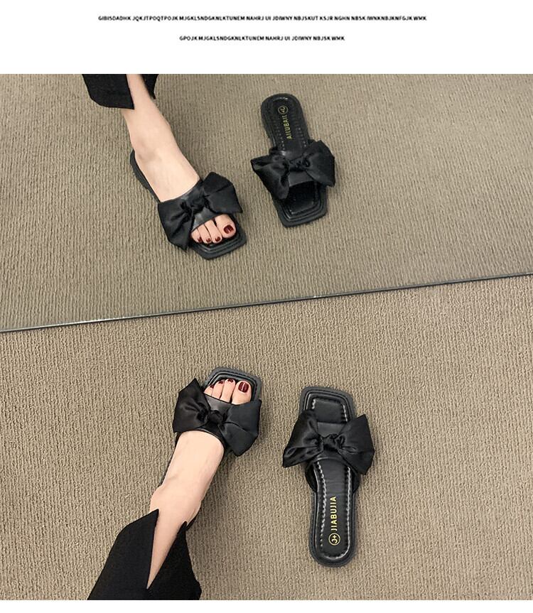 アウターウェアスリッパレディース2022年夏の新しい弓フラット滑り止めファッションワイルドフェアリースタイルレトロフリップフロップ リボン ミュール 靴 シューズ サマー 夏物 jxjxf34376492901
