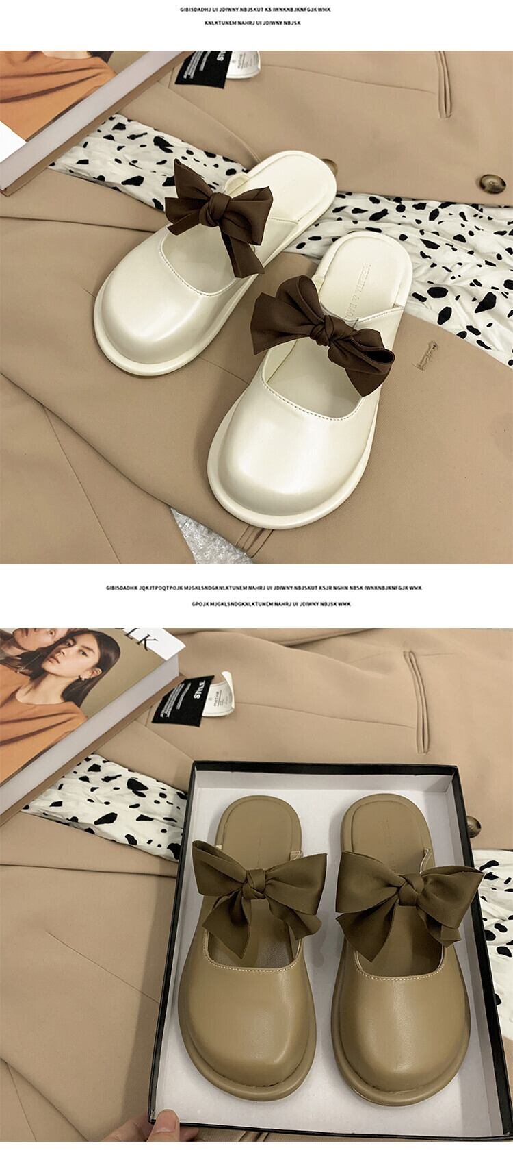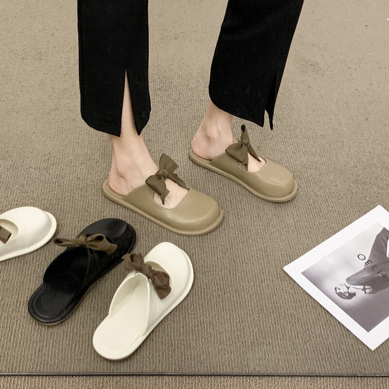 スリッパ女性は2022年夏の新しいファッションレトロかわいい弓平底滑り止め包頭サンダルとスリッパを着用します リボン ミュール 靴 シューズ 大人ガーリー スウィート キュート カジュアル サマー 夏物 jxjxf30392833342
