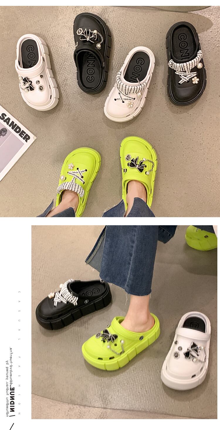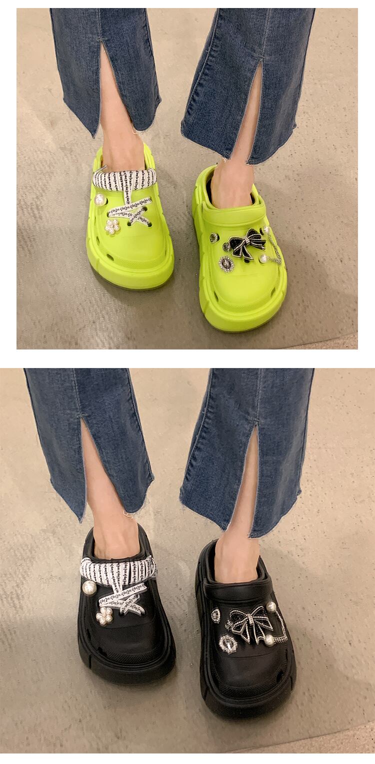 JiaBujieBaotouドラッグアウターウェアレディース2022夏ニューボウ厚底ノンスリップファッションオールマッチサンダルとスリッパ リボン ミュール 靴 シューズ サマー 夏物 jxjxf81599826860