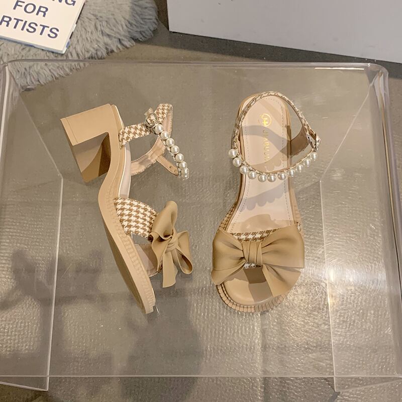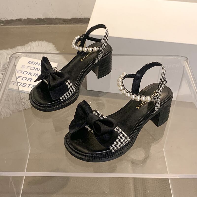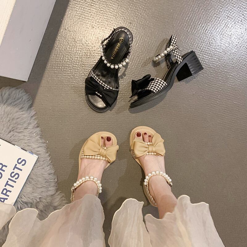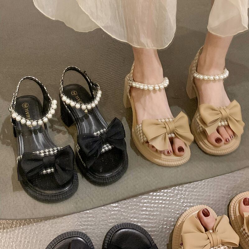 フェアリースタイルのサンダルレディース2022年夏の新しいファッションオールマッチボウ厚手のヒール滑り止めハイヒールトレンド リボン 靴 シューズ サマー 夏物 jxjxf11548018375