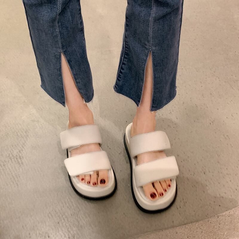 スリッパを履く女性の2022年夏の新しいスタイルのベルクロスポンジケーキ滑り止めファッションオールマッチカジュアルワンワードサンダルとスリッパ ミュール 靴 シューズ サマー 夏物 jxjxf27759653303
