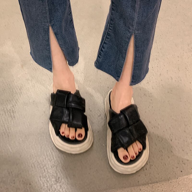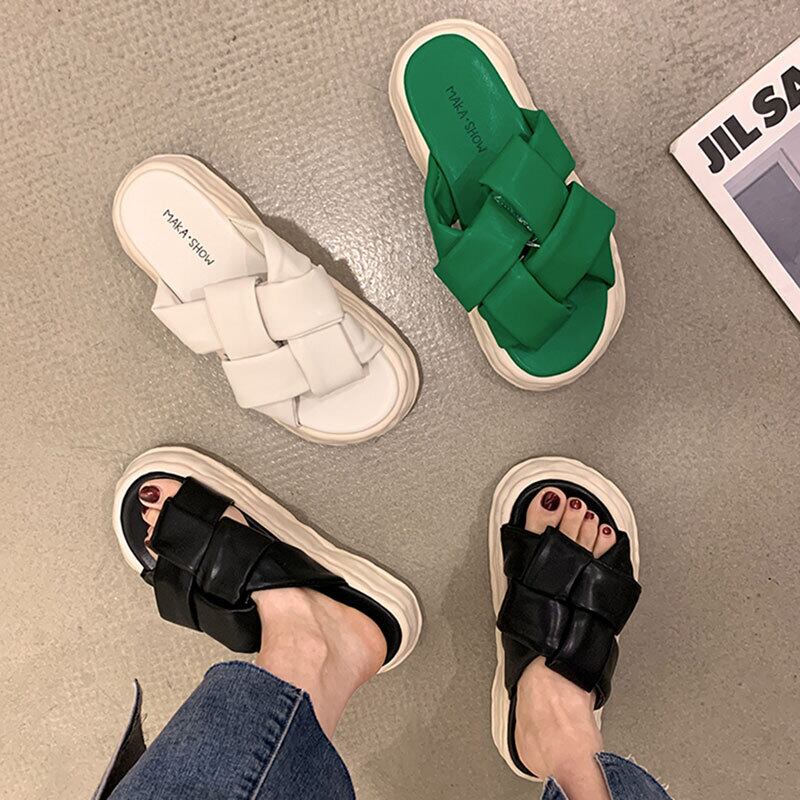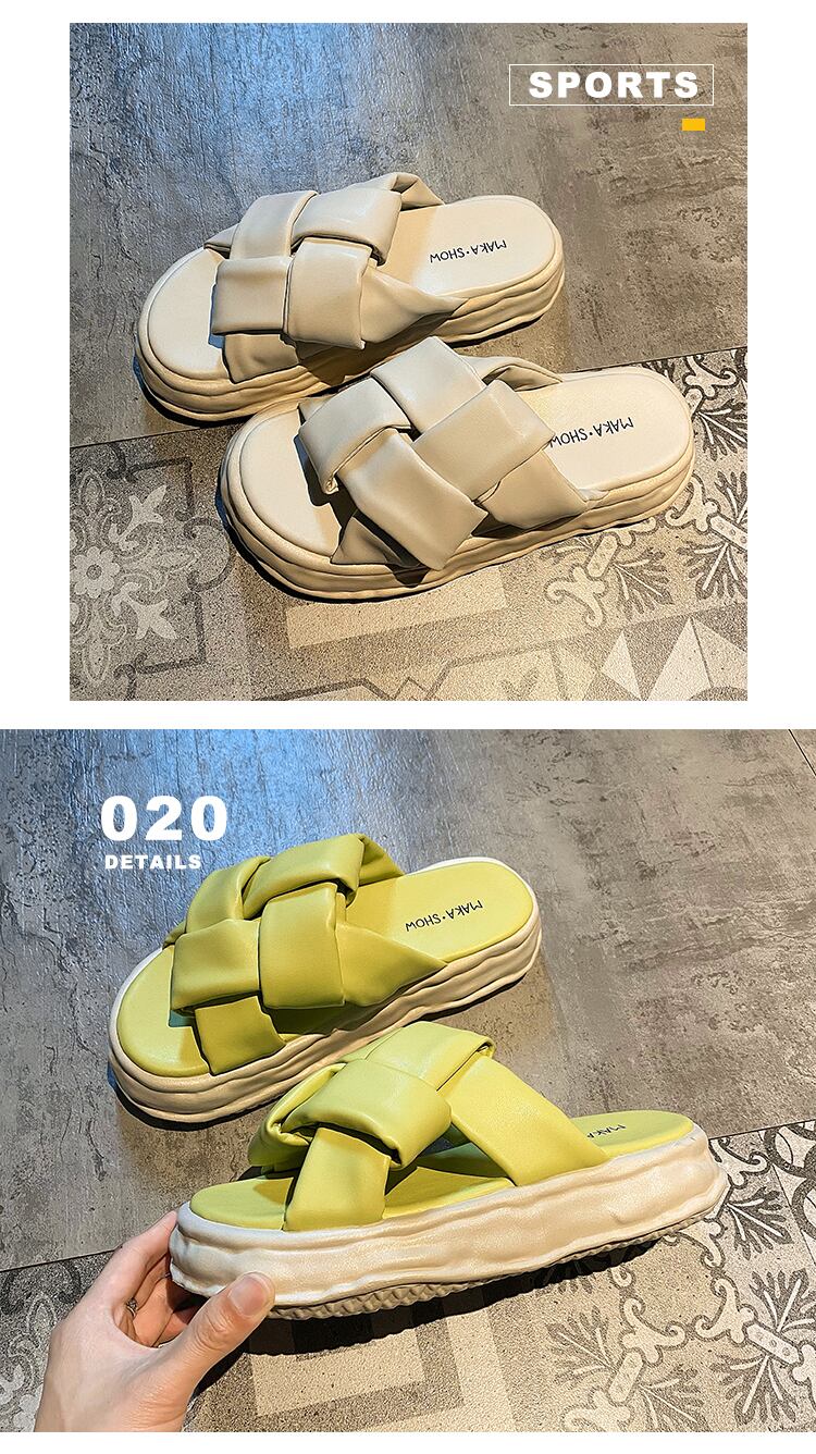 一言ドラッグ女性2022年夏の新しい織り厚底滑り止めファッションオールマッチ小さなカジュアル溶解スリッパ ミュール 靴 シューズ サマー 夏物 jxjxf3742778383