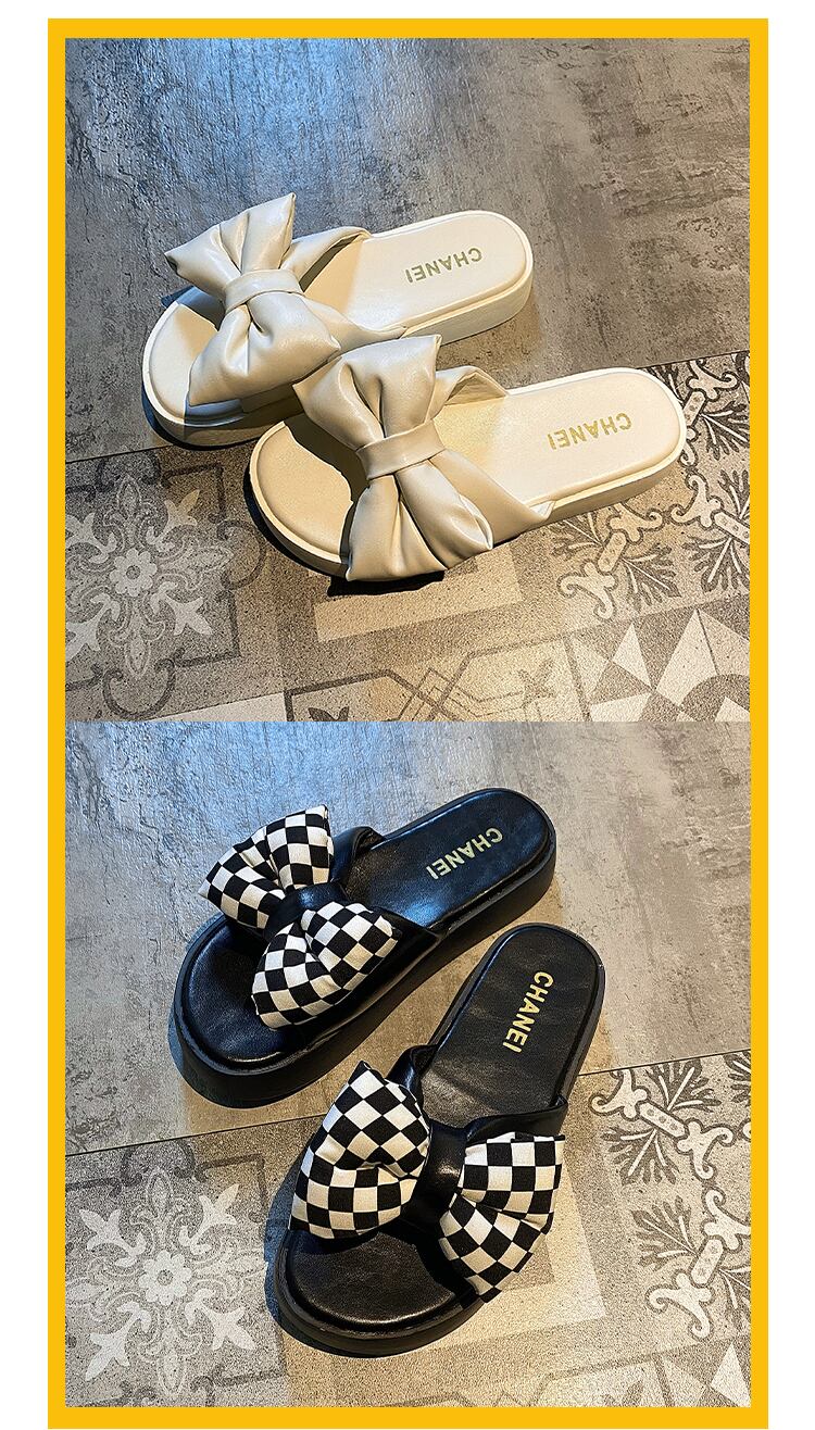 女性の2022年夏の新しいチェッカーボードの外側のスリッパは、フラットボトム滑り止めネットレッドファッションオールマッチ一言スリッパ リボン ミュール 靴 シューズ サマー 夏物 jxjxf8834577730