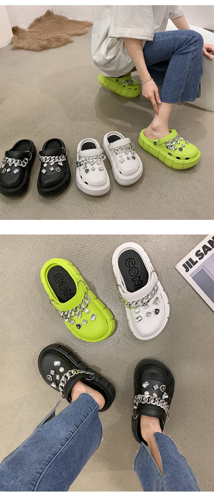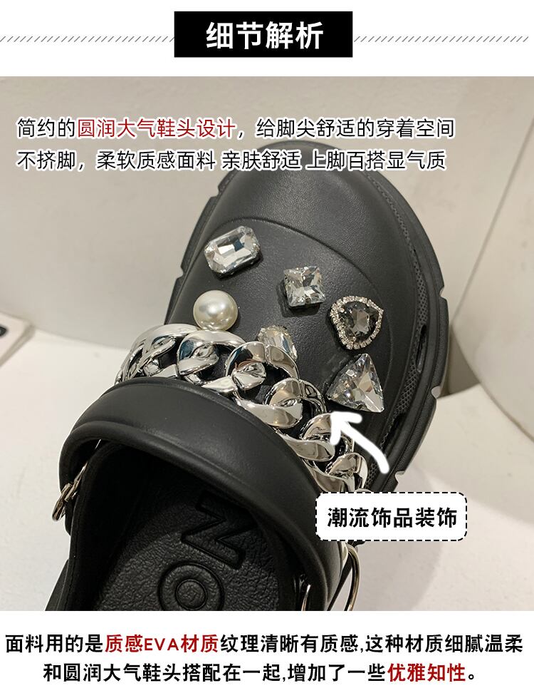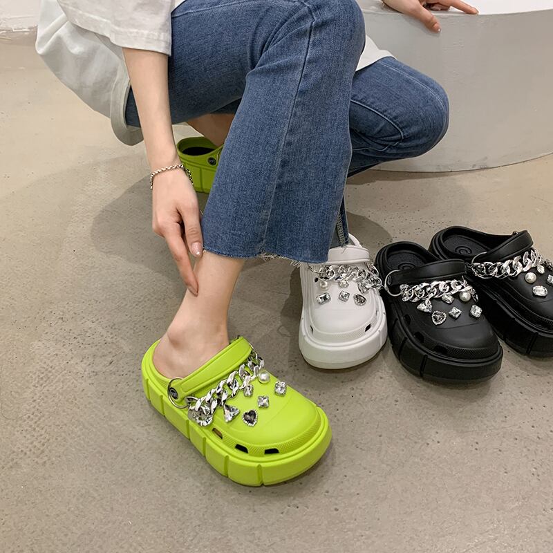 包頭ドラッグアウターウェア女性2022年夏新チェーンラインストーンマフィン滑り止めファッションオールマッチツーウェアサンダルとスリッパ ミュール 靴 シューズ サマー 夏物 jxjxf30292445915